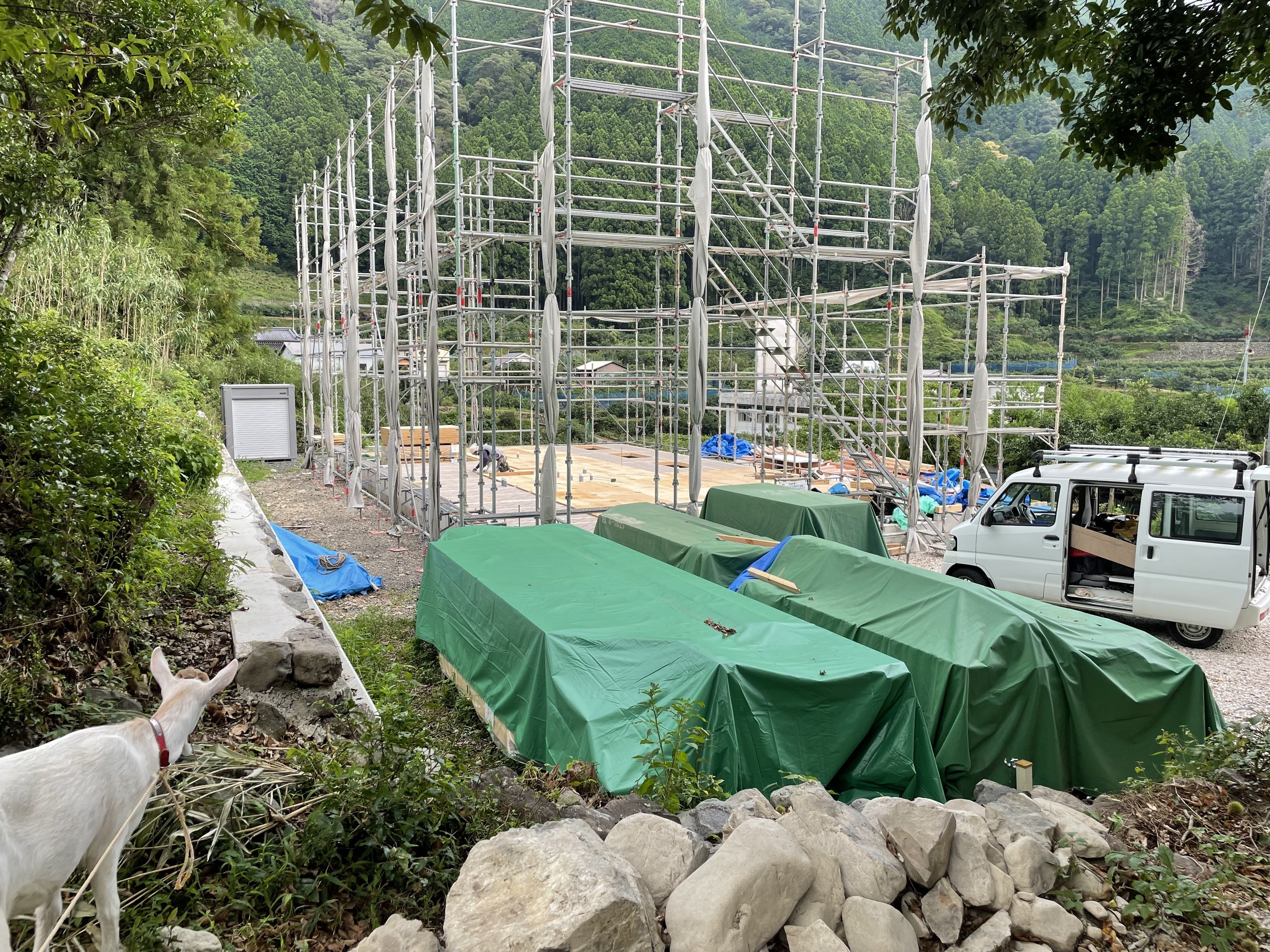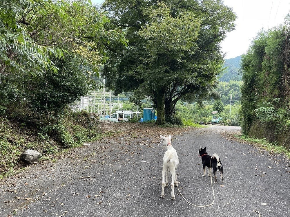 ワコたちと、ジローのおうちの現場あたりを散策してました。