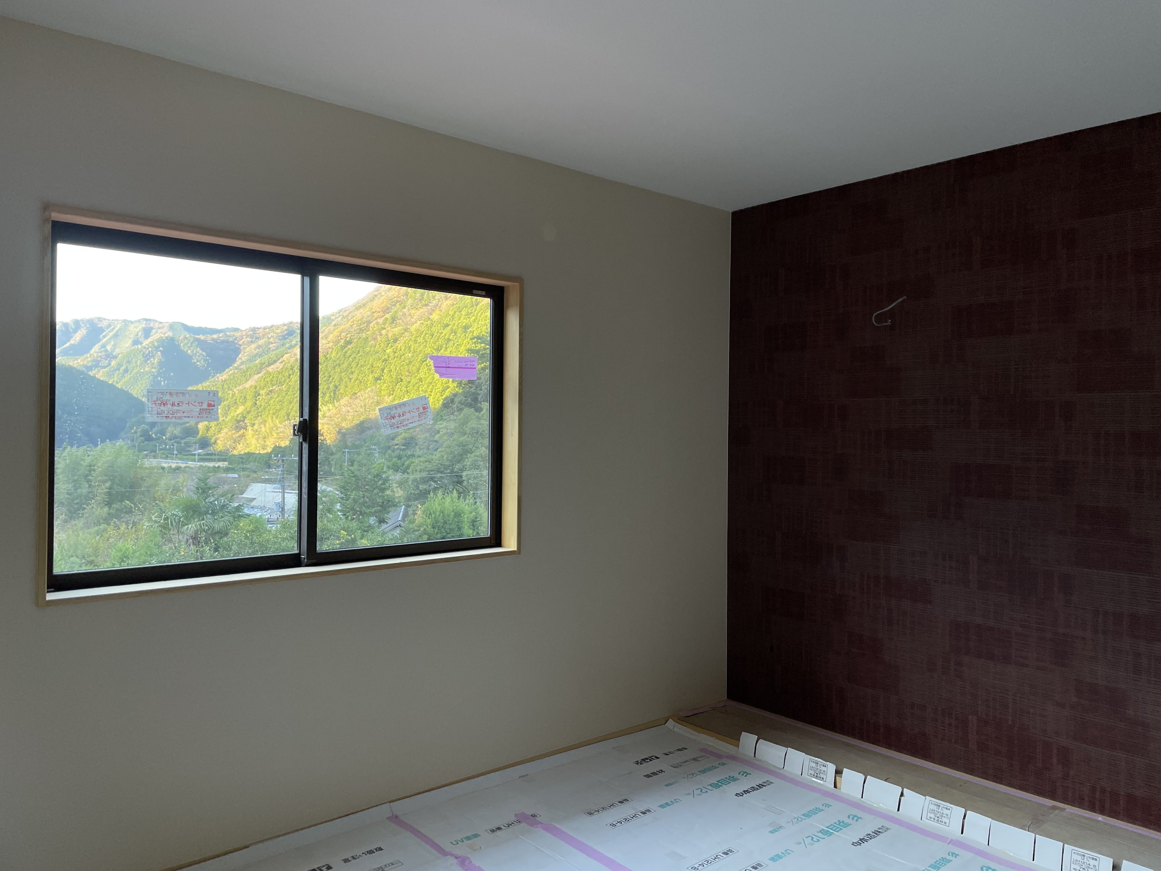 中央に大きな窓があり、畑山の里の風景を楽しんでいただけます。