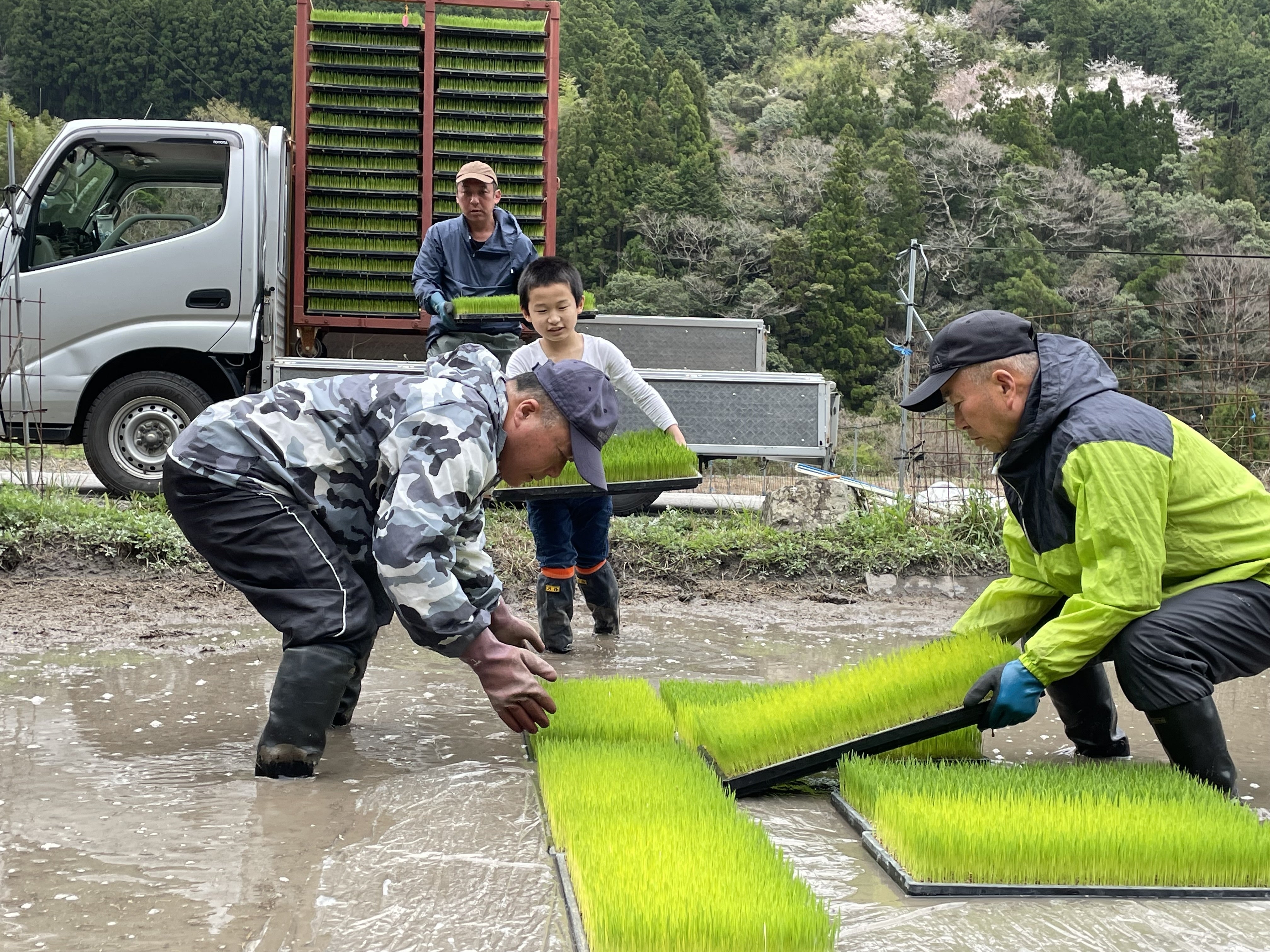 3月末には稲苗が届き、ことしは長男も手伝ってくれました。