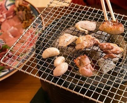 土佐ジローの炭火焼きを召し上がっていただき