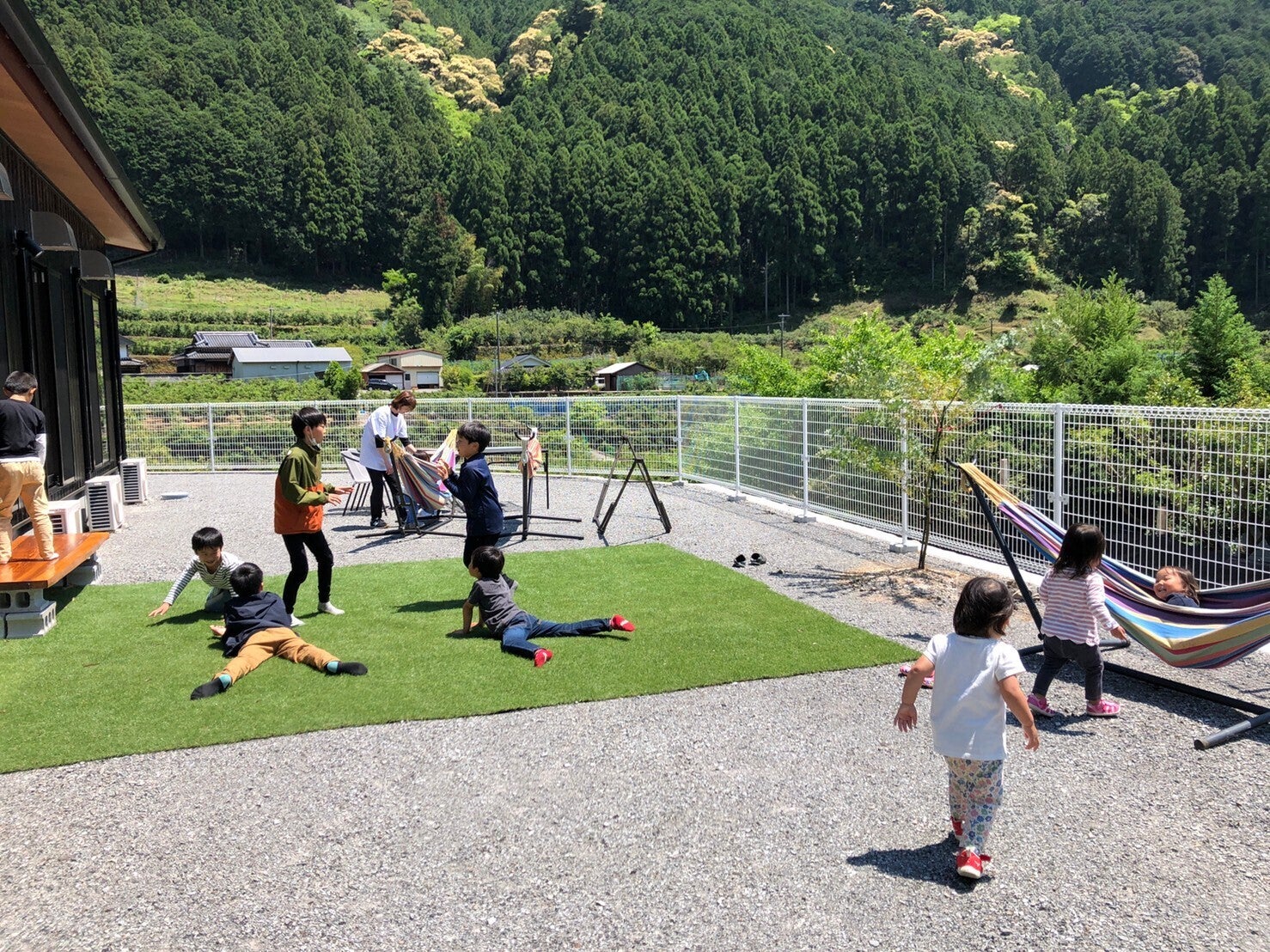 森林浴後、ジローのおうちの庭で遊ぶ子どもたち