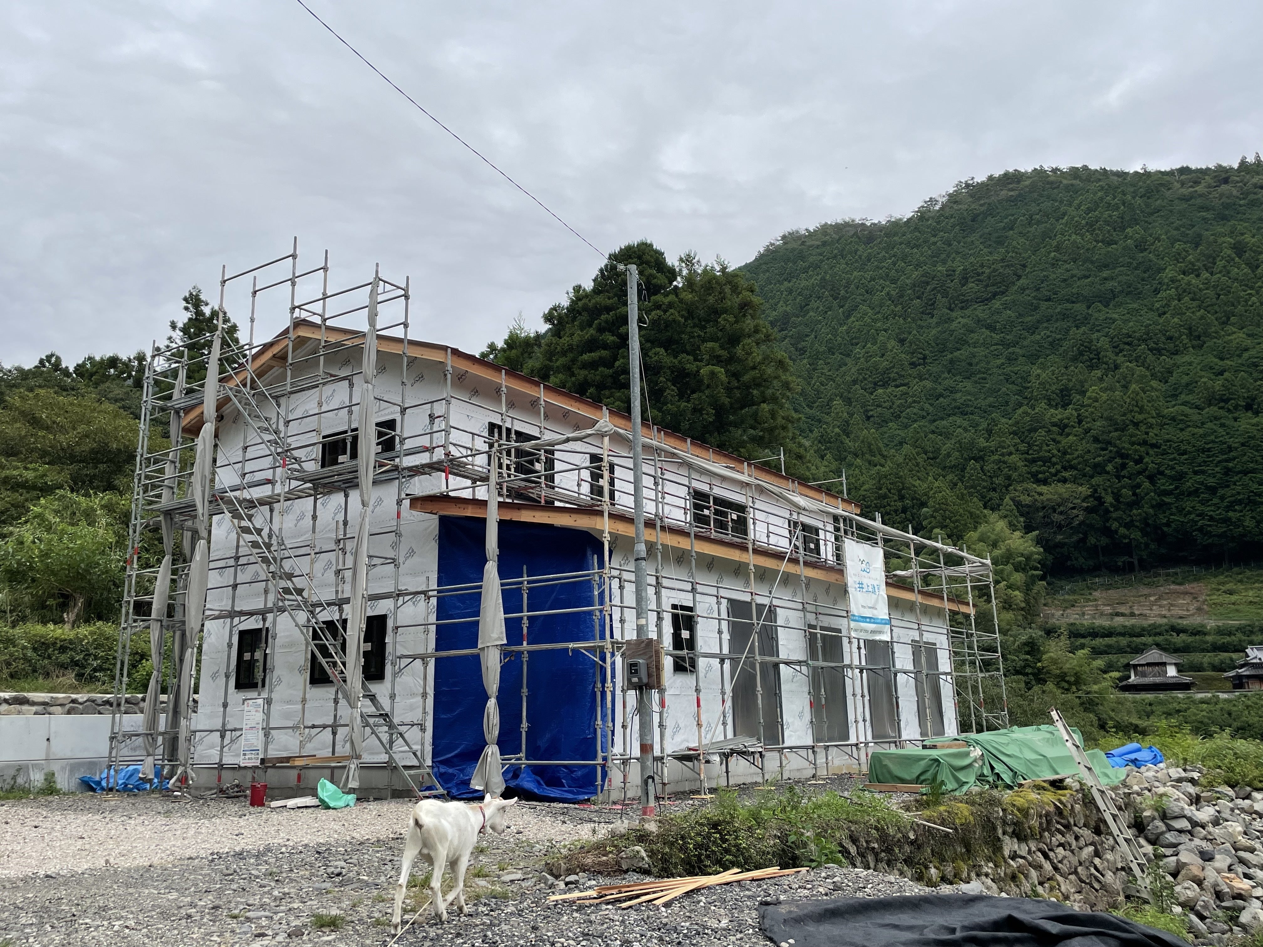 こんにちは。今日は、お天気に恵まれた畑山です。いよいよ、建て方が始まりました!畑山の集落のは入り口の県道からクレーンが見えました(^^)/ひとまず加工場での仕事をひと段落させて現場に出掛けました。10時くらい。1階の柱が建ちあがってきてました。柱にはそれぞれに建てる順番が記されてます。社会人のスタートは大工だった靖一さんはいろいろと懐かしいらしく、現場で説明してくれます。元大工とはいえ、かれこれ35年は土佐ジローをやってるので40年くらい前の大工知識なんですけど…そんな大工さんの差し入れといえば、かき氷だ!と言い張りまして、かき氷を差し入れました。見てると楽しいんですが、仕事もあるので、いったん、会社へ戻って、仕事仕事…15時前に、また靖一さんが「2階の柱が建ったよー」と呼びに来たので、ワコを連れて、現場へ。県道からも2階が見え始めています♪2階がどんどんできていきます。大工さんの小づちの音は会社まで響いてきてます♪帰りに、橋の上から撮影。畑山川と、ジローのおうちの距離感、伝わるでしょうか。家が建つって楽しいなぁ、と改めて思うのでした。最後に先日の写真を一枚。ジローのおうちの、公式日本酒は引き続き、安芸虎入河内ですが高知の美味しい地酒はいろいろとあるのでどれにしようかなぁと、ジローに合わせています。この夜は、桂月さんの相川誉を土佐ジローの無添加の燻製にあわせてみました。桂月さんのお酒も美味しいので、何を置こうかなぁと夢想しています。こういう時間も楽しいです(^^)/