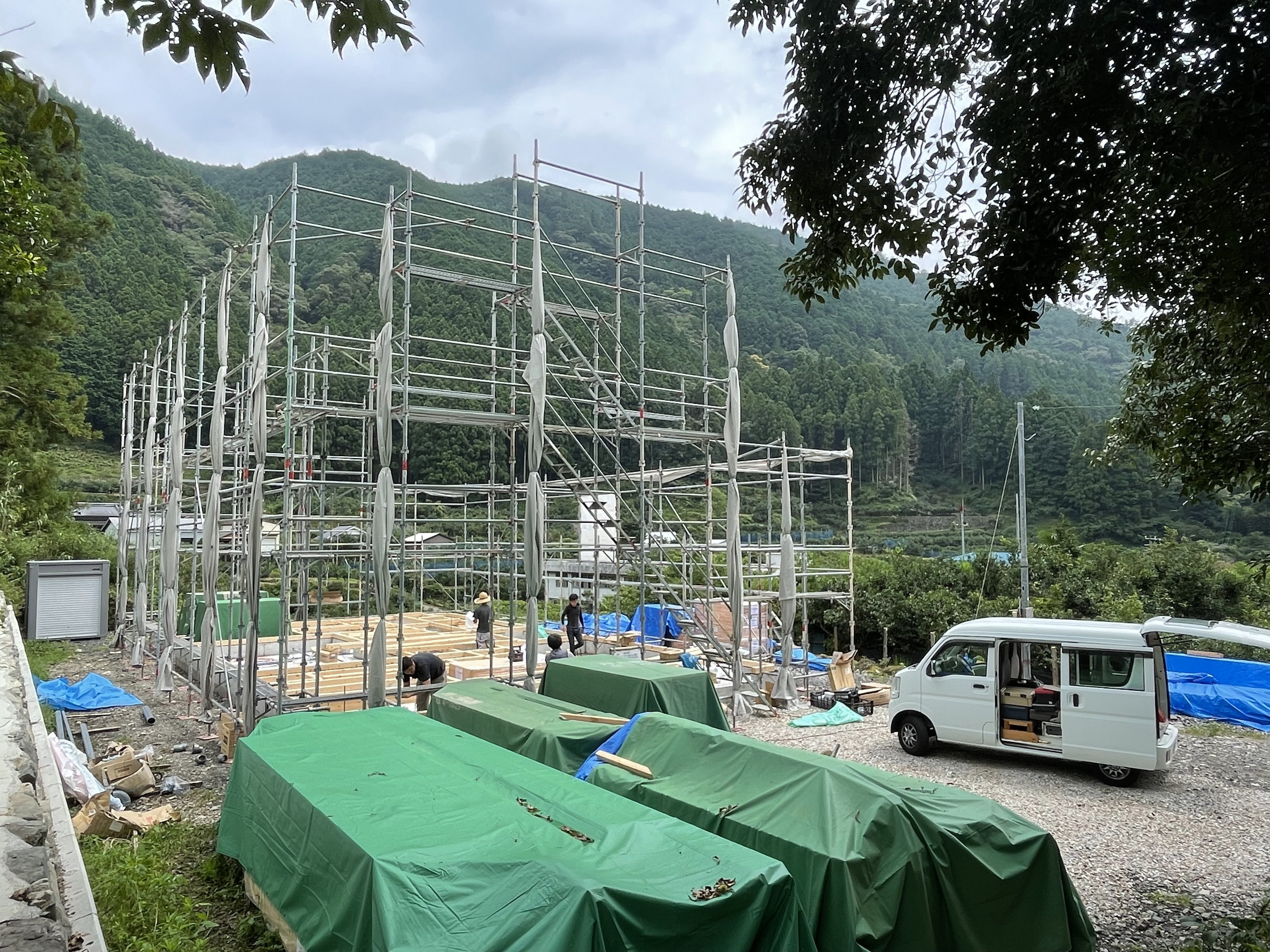 こんにちは。雨があがりジローのおうちもようやく次の工事が進み始めました。基礎の上に、材木が組み込まれました。現場には、木の良い香りがし始めました。来週は、棟上げの予定だそうです♪\取材あれこれ/25日に発売された雑誌「クロワッサン」ではたやま夢楽の土佐ジローを紹介いただきました♪26日は、日本テレビ「ヒルナンデス!」でアヒージョ缶詰が紹介されました♪ー インターン ーはたやま夢楽では、学生などのインターンを受け入れています。今夏も日本大学の学生さんが来てくれる予定でしたがコロナの感染拡大もあり、残念ながらお断りすることに…私自身も、インターンのような形で学生時代に初めて畑山を訪ねたのが最初の契機でした。嫁に来てからも、年に何人か来てくれています。先月は結婚式を挙げた子がいてジローを式での料理に使ってくれました。ことし、大学受験をするという学生もいてうちでのインターンを経歴に書きたいというので書類を送ってきました。その後のお付き合いもいろいろと生まれるインターン。来年は、また受け入れられるようになればなぁ…と思っています。― 豪雨、その後 ー先日の雨で、山中での土砂崩れで電柱が折れてこの1週間は、電源車?が泊まり込みで電気を供給し続けてくれていました。その復旧のための計画停電が3回ほどありました。停電にあわせて、ジローの加工発送の段取りをしながら最終回は2時間半ほど停電だったのでワコたちと、ジローのおうちの現場あたりを散策してました。ヤギのメェメェは、だいぶ大人になり力強くもなってきました。好みの葉っぱを見つけたらなかなか動こうとしません…雨も収まり、川の水も一気に減りました。そろそろ川で遊べるようになるでしょうか…。靖一さんは、雨の心配よりも豪雨のあとで、川床が変わってどこが遊び易くなっているか、という想像ばかり膨らませています。たくましい、というか…私も海育ちなので、海なら同じようなことを思うのでなんとなくは分かるんですが。目下、靖一さんは、加工場の外周り用に水をあてる作業をしているようです。さっきは、ブロックを切ってました。加工場用には地下水ではないといけないんですが外周りで水を使う分には、谷水をあてようということは建てる前から話は出てたんです。宿が無い今は、靖一さんも比較的時間が取れるので大工仕事をあれこれ、と。加工場の裏手の山の上の方にある小さな滝から水を連れてくるようです。海外のような話ですが日本の高知の奥山の話です。