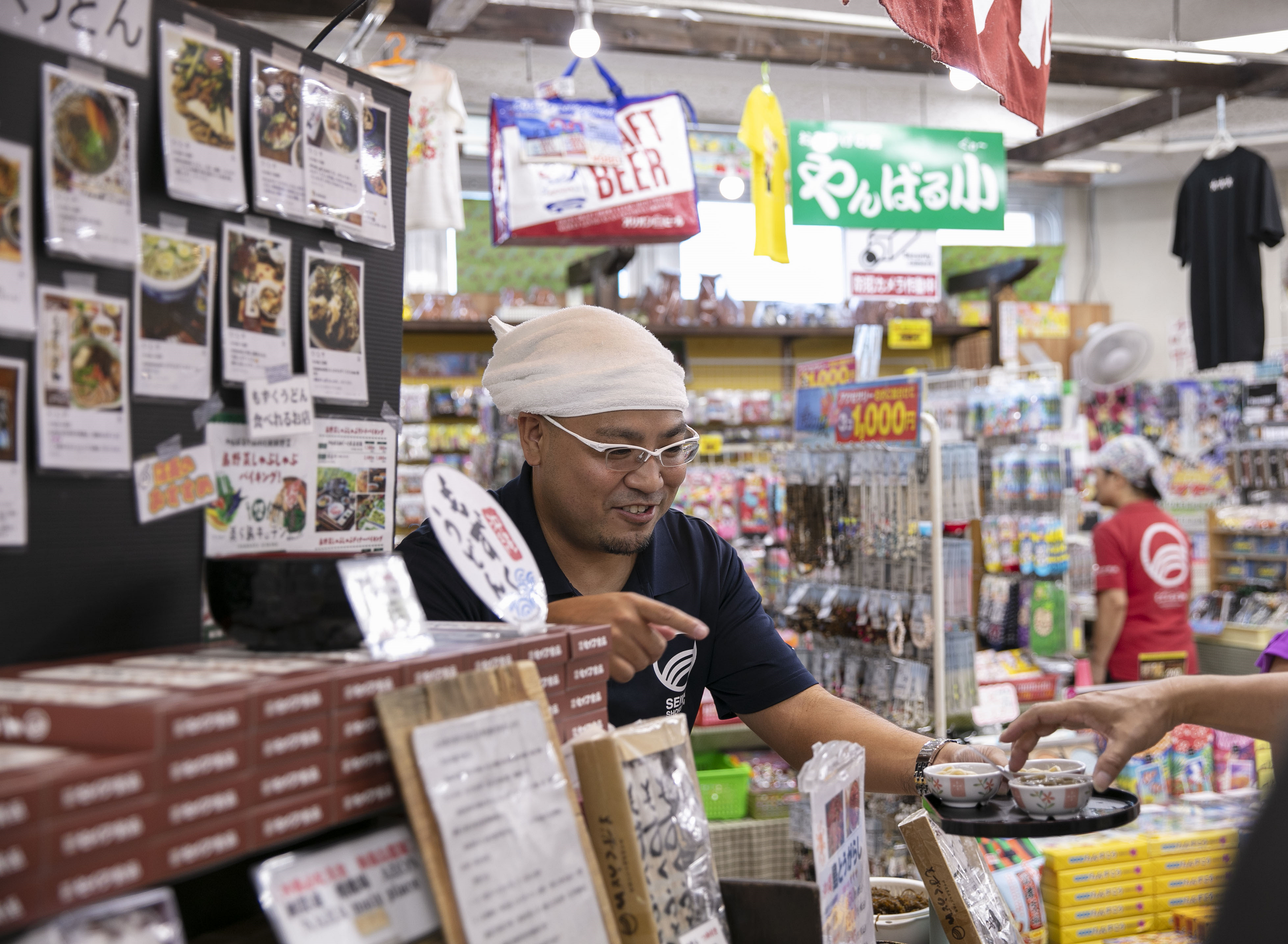 もずくうどんは、ミネラルと食物繊維が豊富で食感も良く、健康に良いと沖縄土産として愛されてきました。一度購入したお客様がどんどんリピーターとなっております。セイワ食品は現在、道の駅や観光施設を中心に、県内5店舗でもずくうどん(乾麺)・もずくの販売をしております。