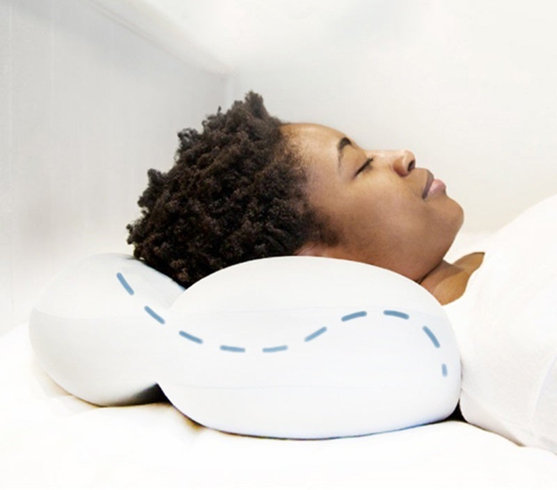 首から頭まで流れるような自然な形で睡眠できるようなSラインを採用。