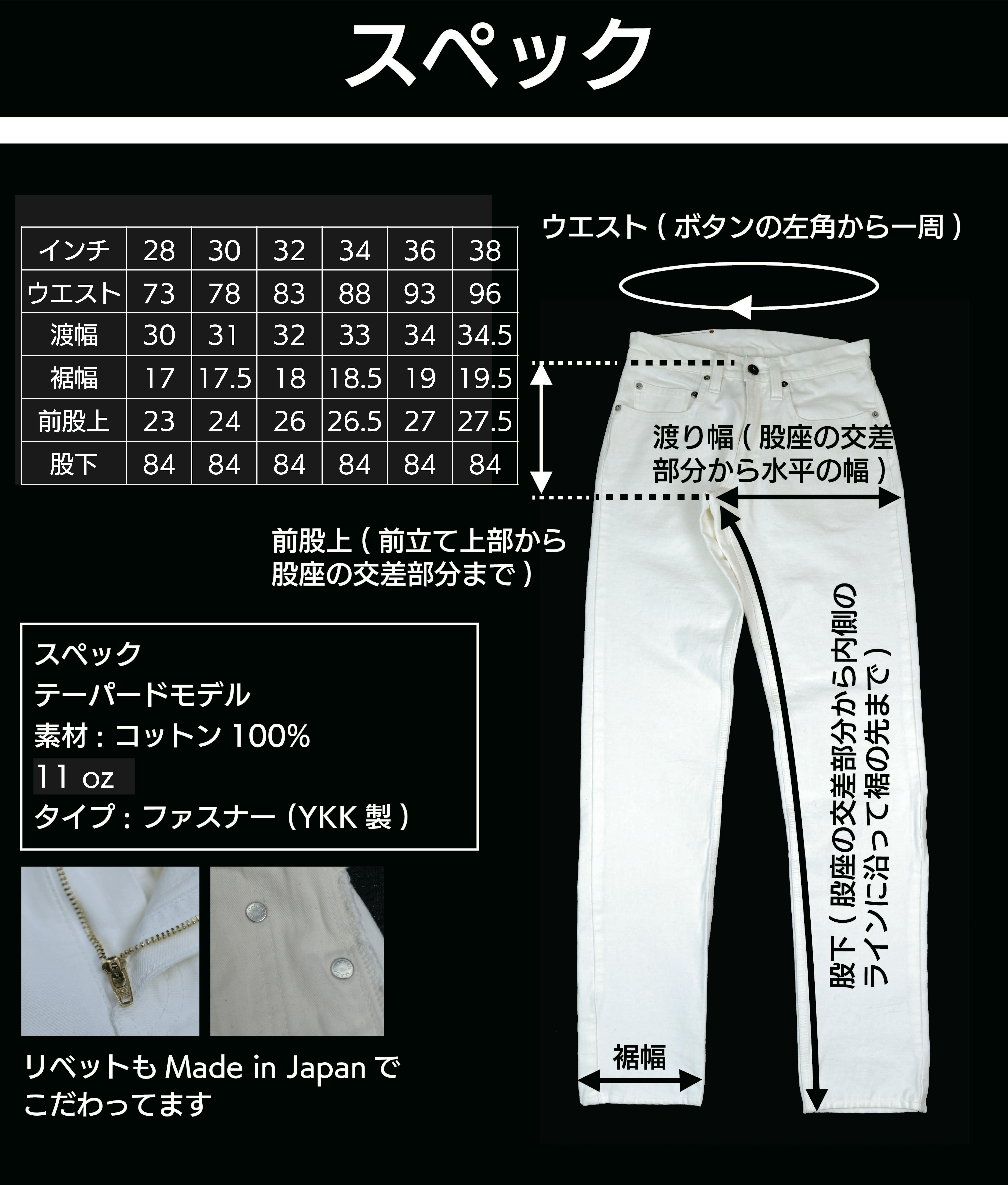 ※日本製のジーンズは海外製のジーンズに比べてやや小さい作りになっております。
