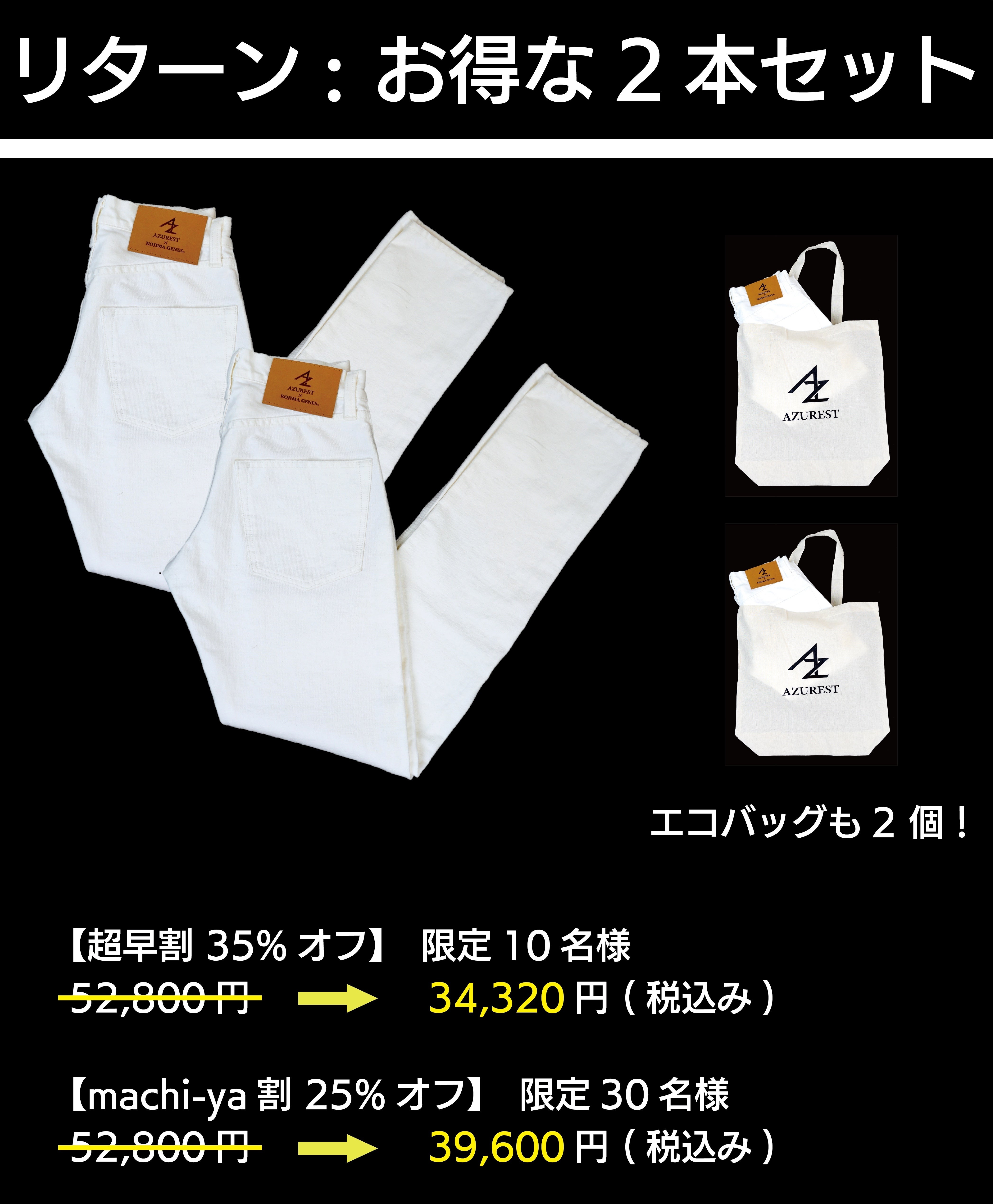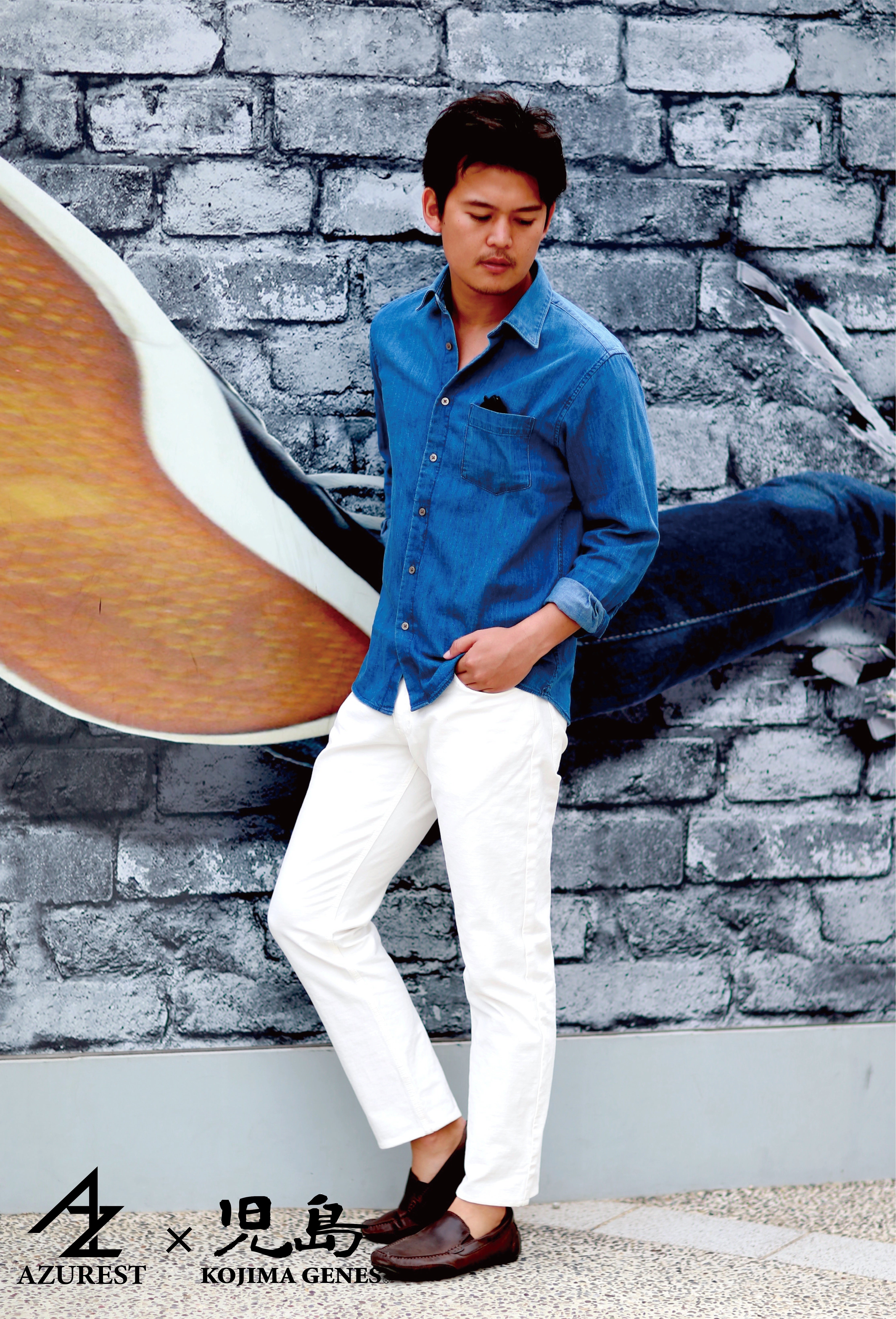 児島ジーンズ=ハードなインディゴデニムのジーンズをイメージする方が多いと思います。そこで今回は今までになかった、現代人が毎日穿ける、穿きたくなる「白」ジーンズの作成をお願いし、プロジェクト開始となりました。