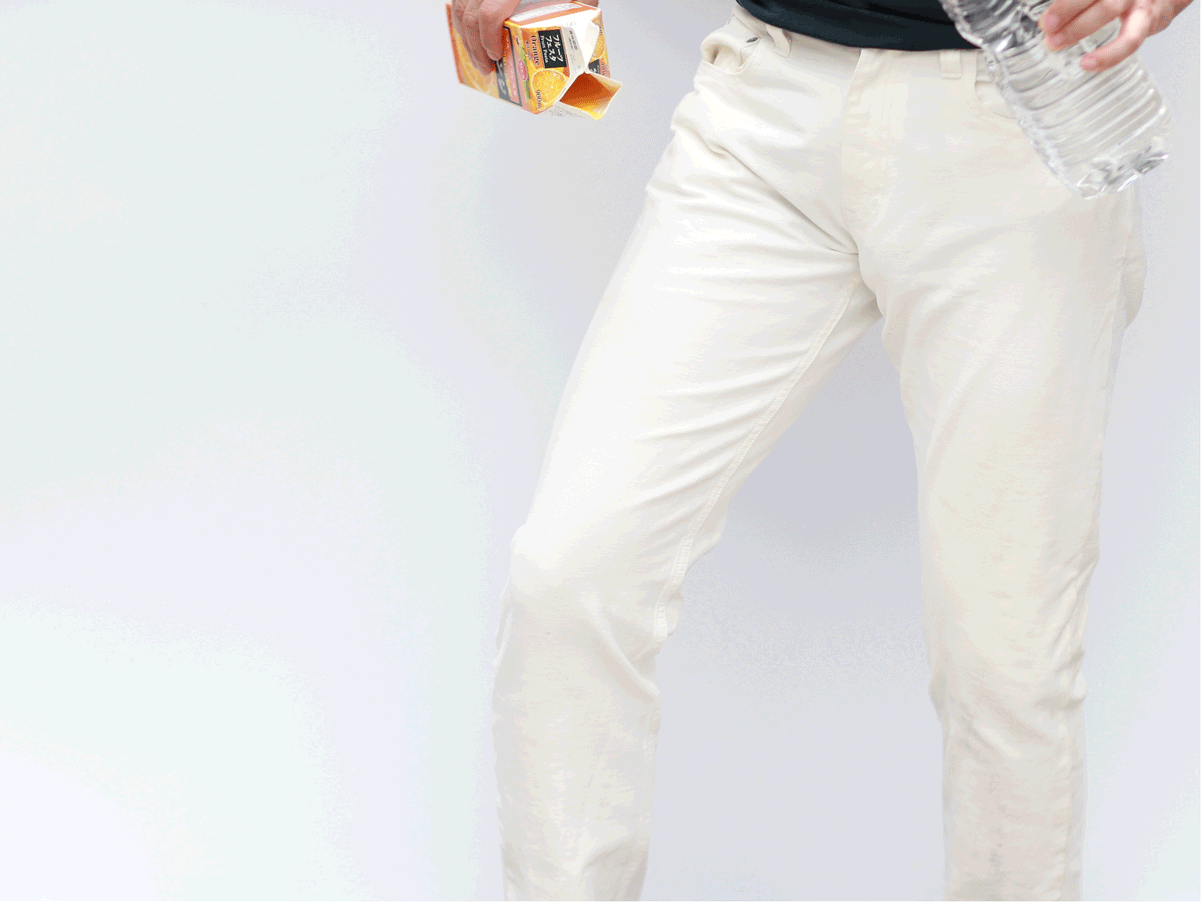 ホワイトデニムを汚してしまった。。。中まで染み込んでムレムレ。。。