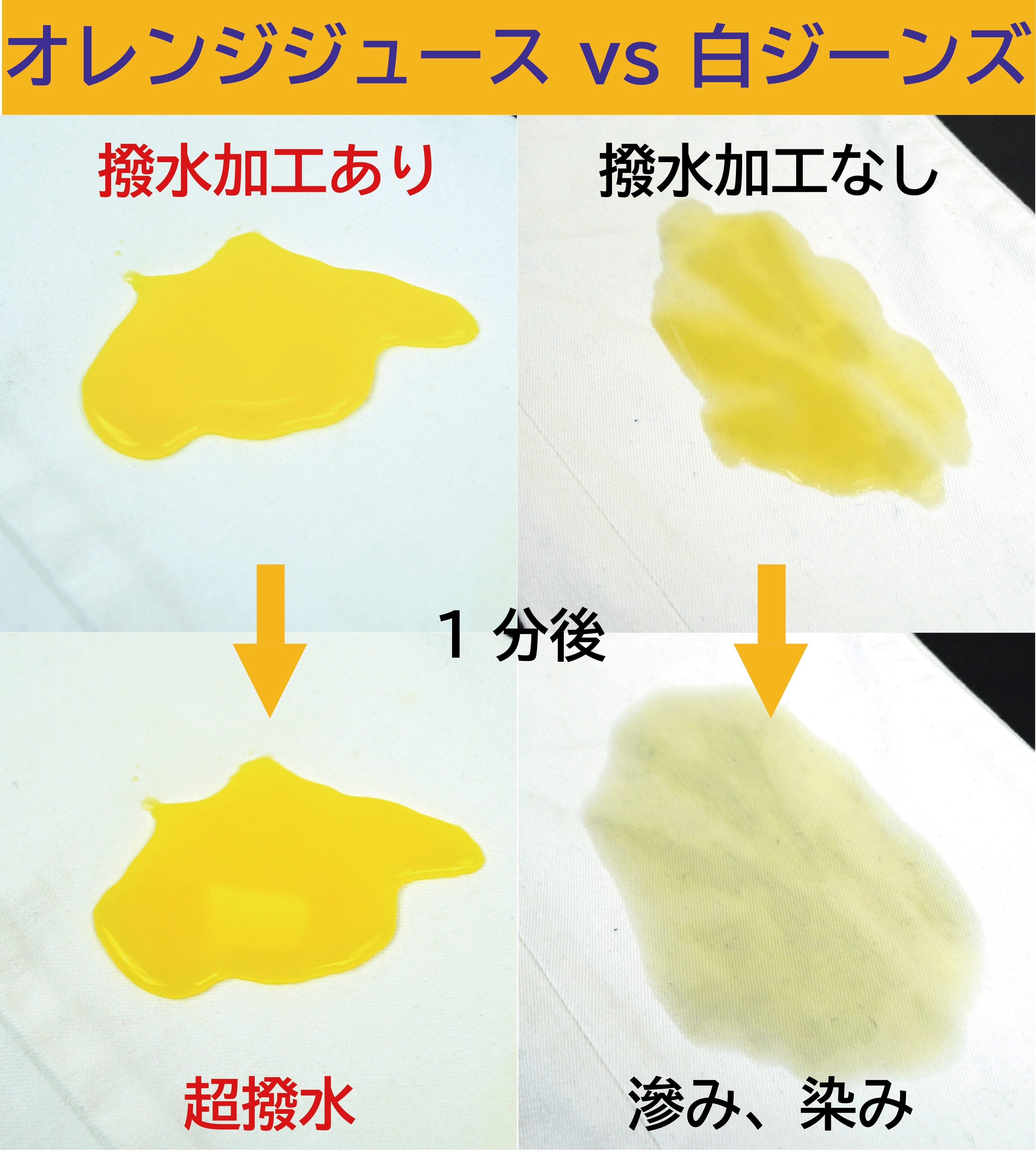 超撥水(はっすい)なので、染み込まない、水で簡単に完全に落ちるんです!