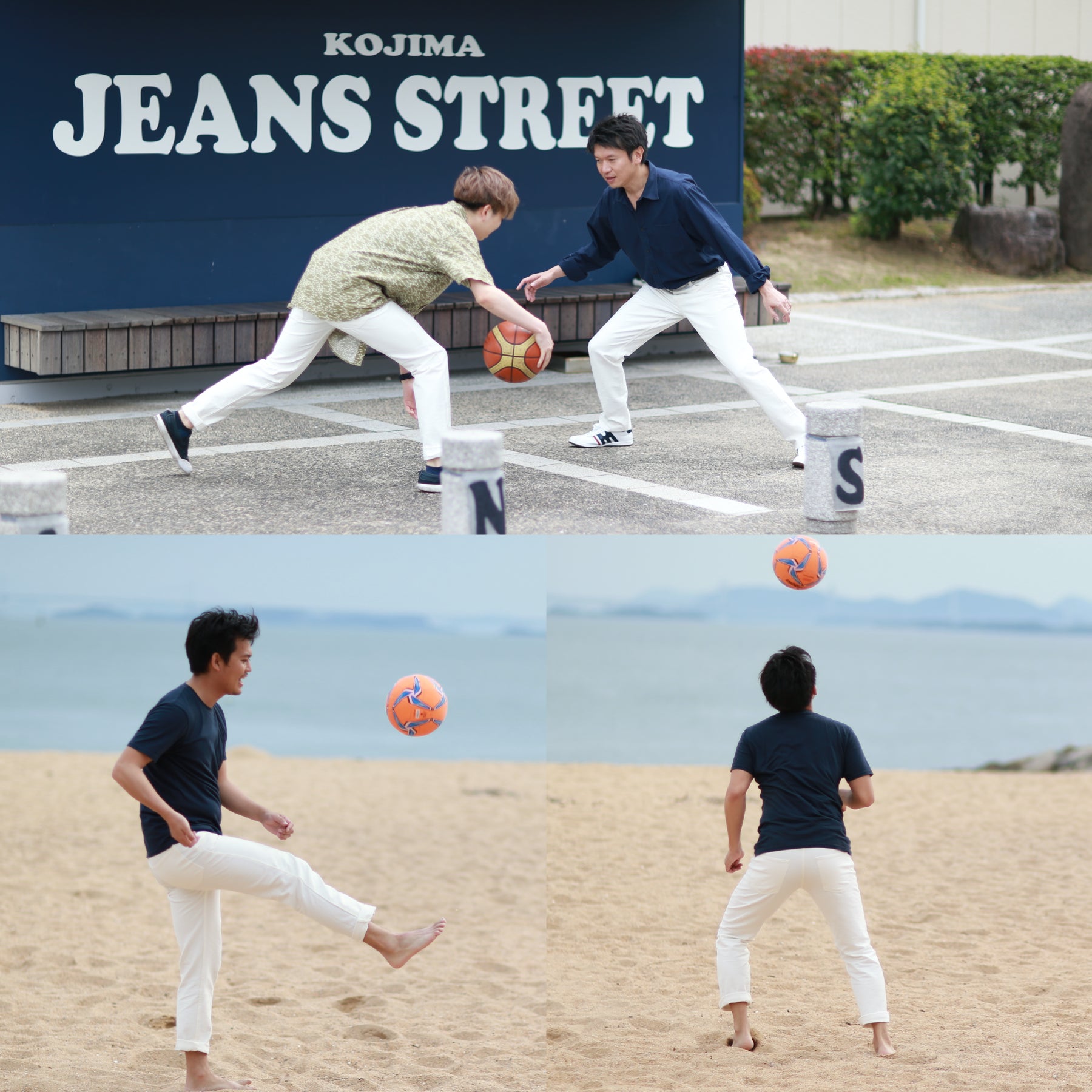 ホワイトデニム穿いたままでもバスケやサッカーが出来ます!