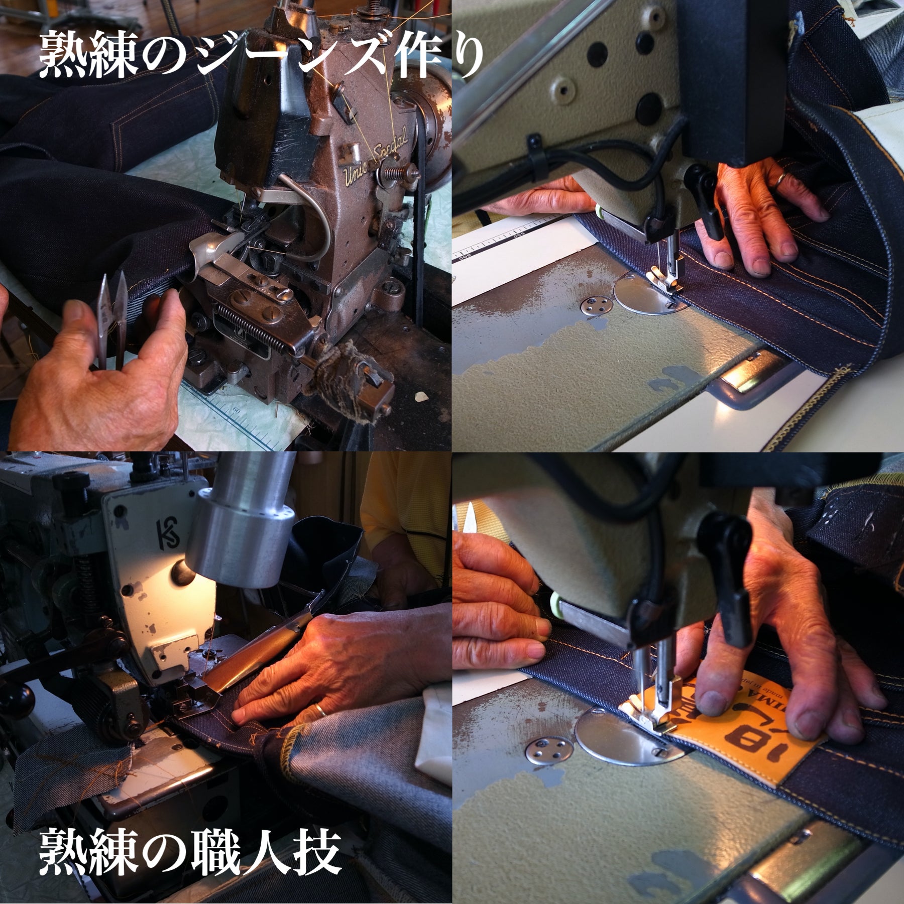 岡山井原産の生地、加工・縫製は児島ジーンズで行われています。