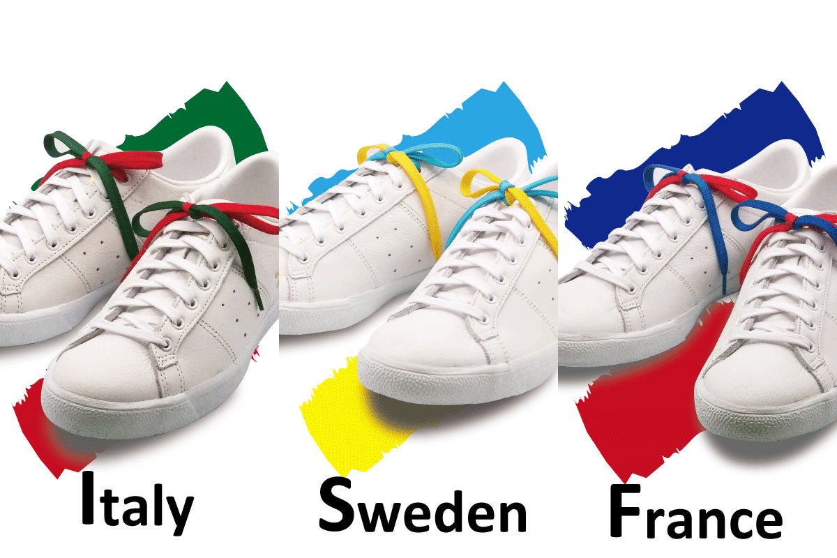 赤-白-緑のイタリア、青-白-赤のフランス。水色と黄色のスウェーデンの3種をラインアップしています。