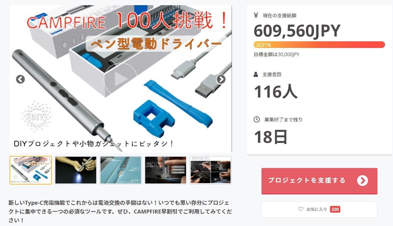 たくさんのご支援をいただき、そのお陰で初期目標より2000%を超えて達成できました。
