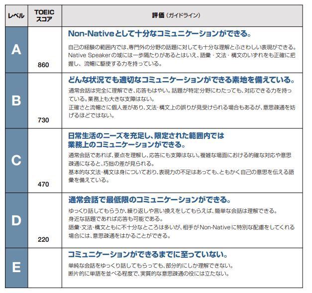 もしTOEIC600点でしたら、コミュニケーション能力は表でいうとCとBの間位でしょうか?