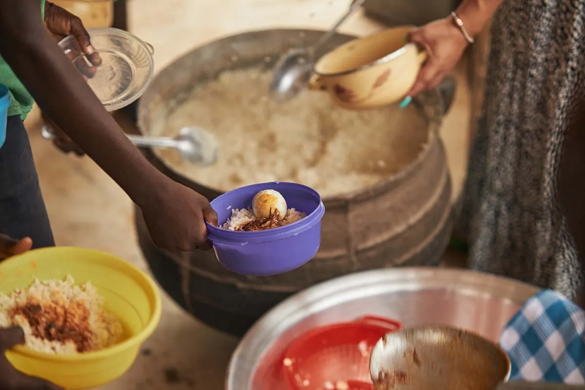 そして、この学校を中心に継続して実施してきたのが給食支援です。ガーナでは本来、公立学校の給食は政府が負担するはずなのですが、現状は財政難の為、給食を配布できている学校は都市部のごくわずかとなっており、給食を提供できていない学校が多く存在します。私たちの学校では、これまで多くの皆さまにご支援頂いたことで、安定的に子どもたちに給食を提供することができました。しかし、1食にかけられる1人あたりの予算は40円。その内容は炭水化物とスープが中心で、子どもたちに十分な栄養が行き届いていないことが課題となっています。