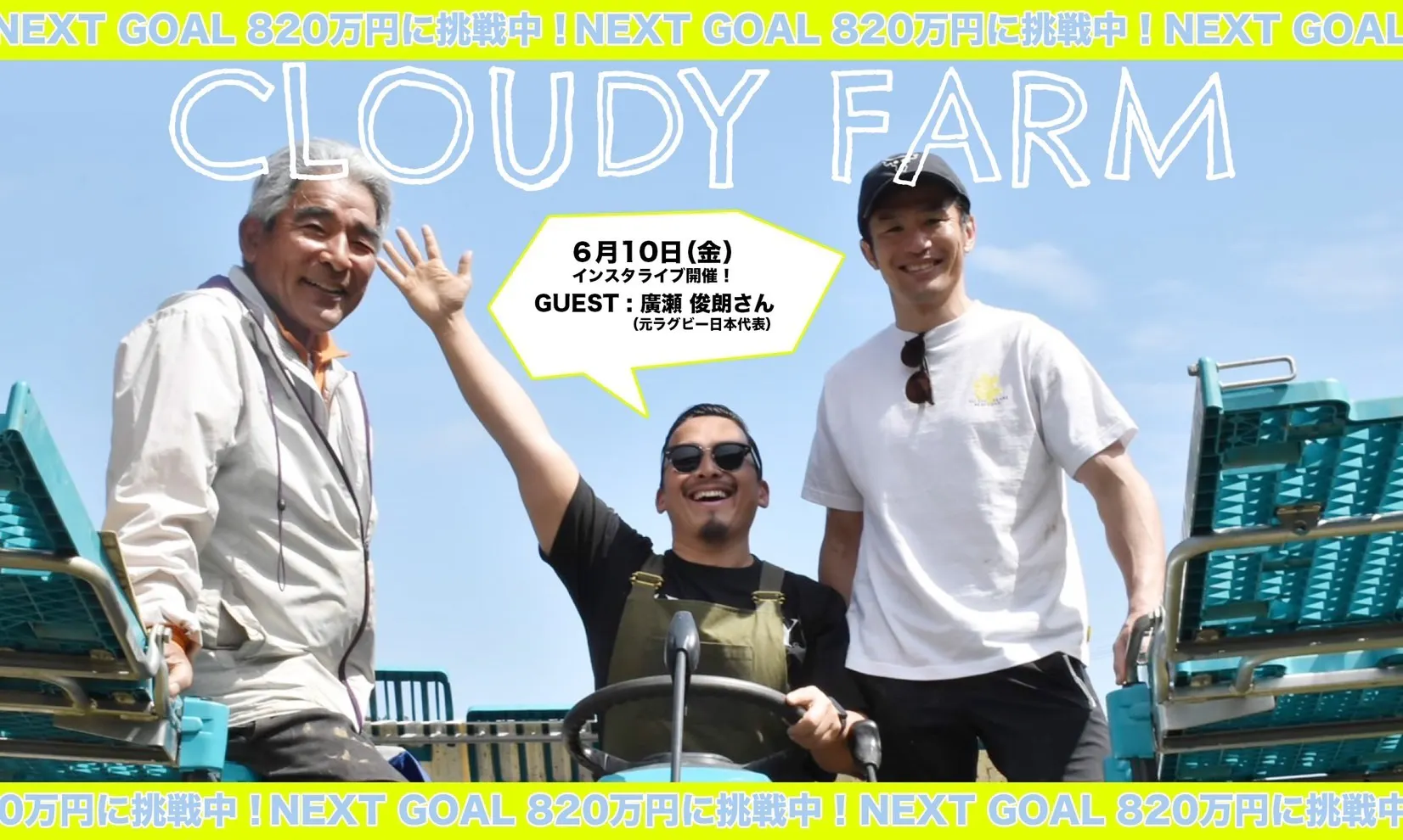 ゲストには、CLOUDY FARMを応援してくださり、宮崎で共にCLOUDY米の田植えにも参加してくださった廣瀬俊朗さん(元ラグビー日本代表キャプテン / 株式会社HiRAKU代表) @toshiakihirose をお招きしお届けします。ぜひご参加いただき、今回のアクションの成果を一緒になって見届けていただけましたら幸いです。