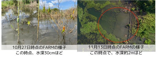 11月13日時点で、畑のあった場所は水深2mになるまで被害は拡大してしまっております。
