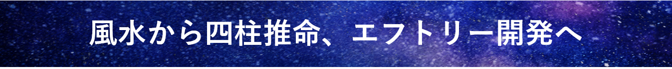 ①宿命を知る、②運命を知る、のは人の体の環境調整、すなわち四柱推命。③家の環境を整えるのが、風水です。エフトリーはその、①宿命を知る、②運命を知る、の2点を簡単にできるようにした、WEBアプリです。