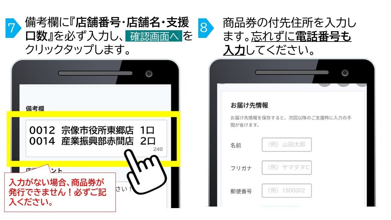 ●支援する際、「備考欄」に、支援する事業者・店舗名を必ず記載してください。