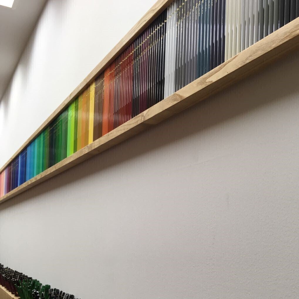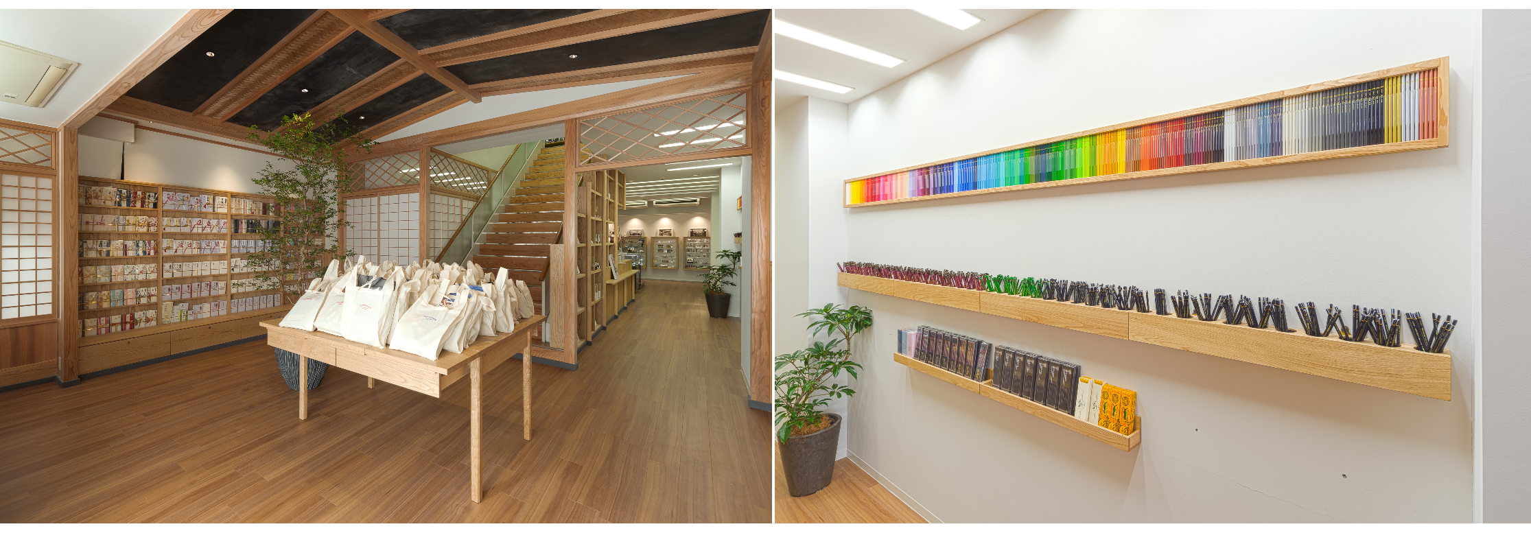 木の温かみが溢れる店内には色とりどりの鉛筆などが並びます