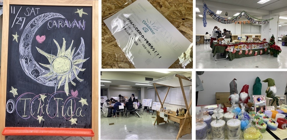 クリスマスらしい洋菓子なども販売しており、寒さをしのぐのにワークショップ会場も人気でした。