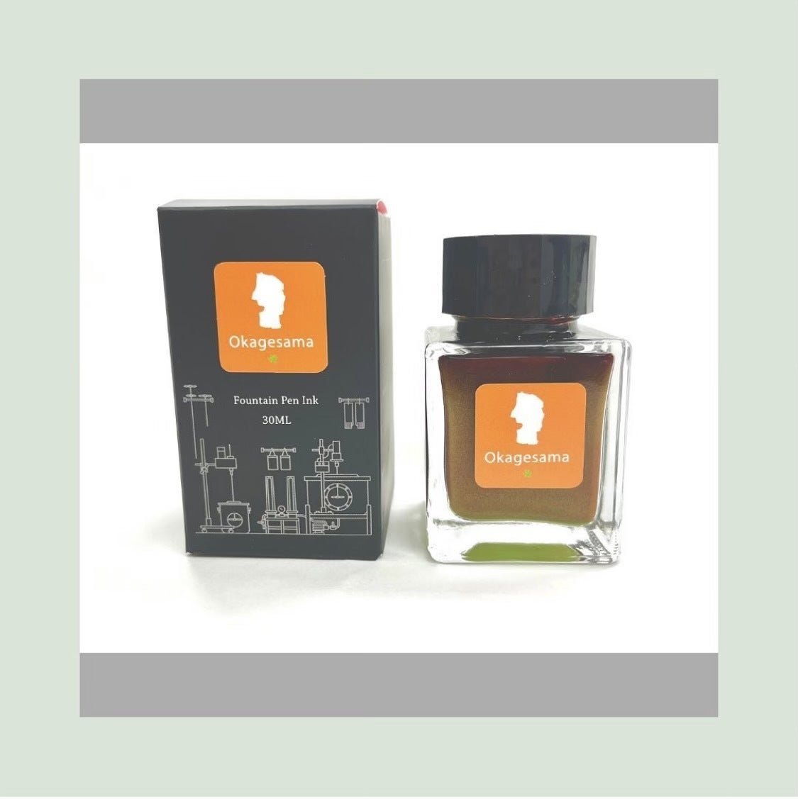 また、嬉しいのがTono&LIMS都道府県インクの山形インクにラメをいれたOKAGESAMAインク。オレンジに緑のラメが入った、おかげさま文房具店でしか購入できない一品です。キャラバン終了後は、おかげさま文房具店の通販にて購入いただく事ができます。