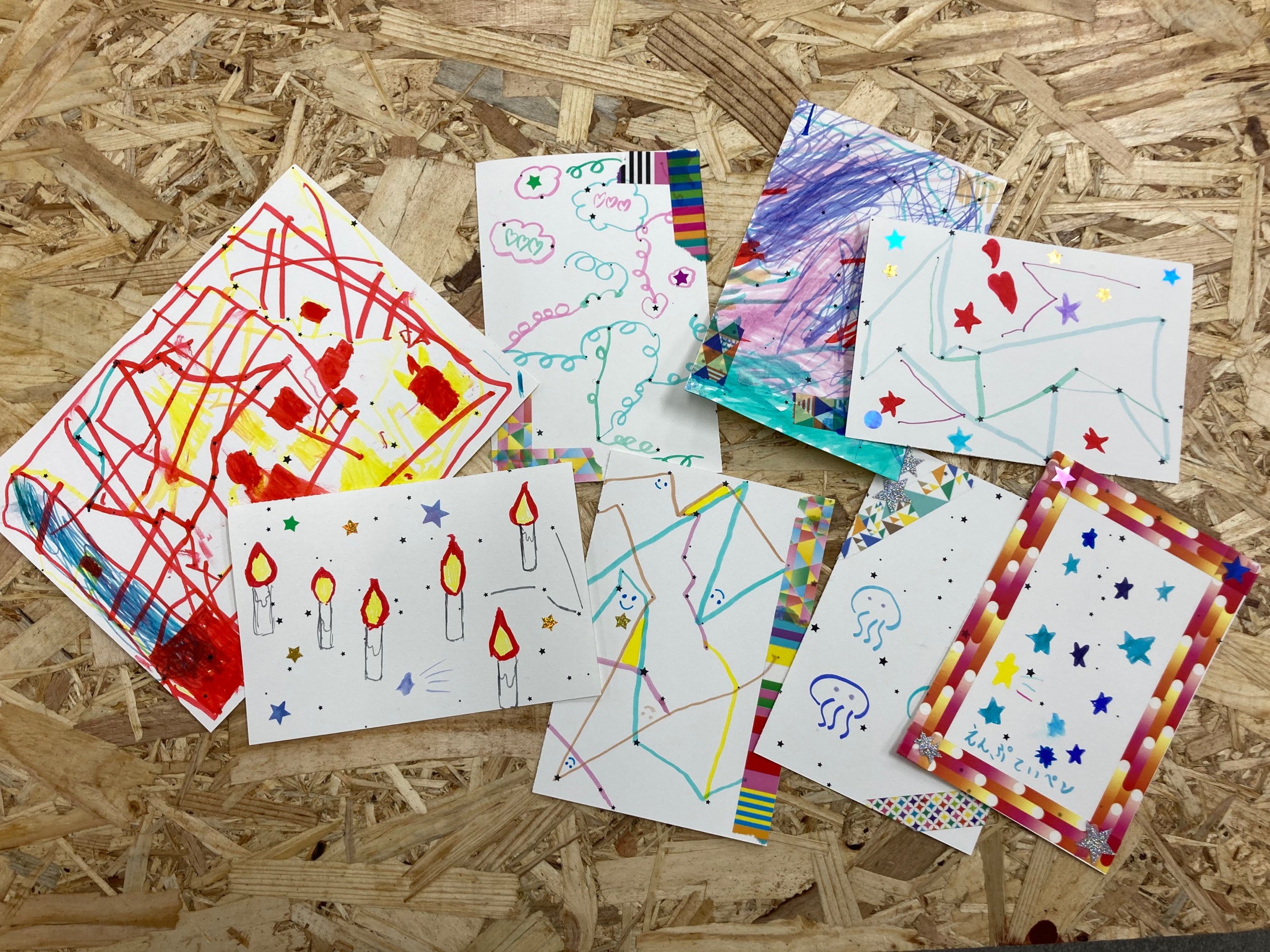 今回も個性豊かなハガキ作成をした頂きました。シートを最後に2枚に分けると事前に説明をすると、それを前提に絵を描く方もいれば、全く気にせず全面に絵を描いて、半分に分けたくないという子供達。我が家の子供は後者でした・・・・まあ、描くと愛着がわくので渡したくないですよね・・・・とは言え、オカモトヤにいただけるかしら?と問いながら頂戴できるものは頂戴しました。