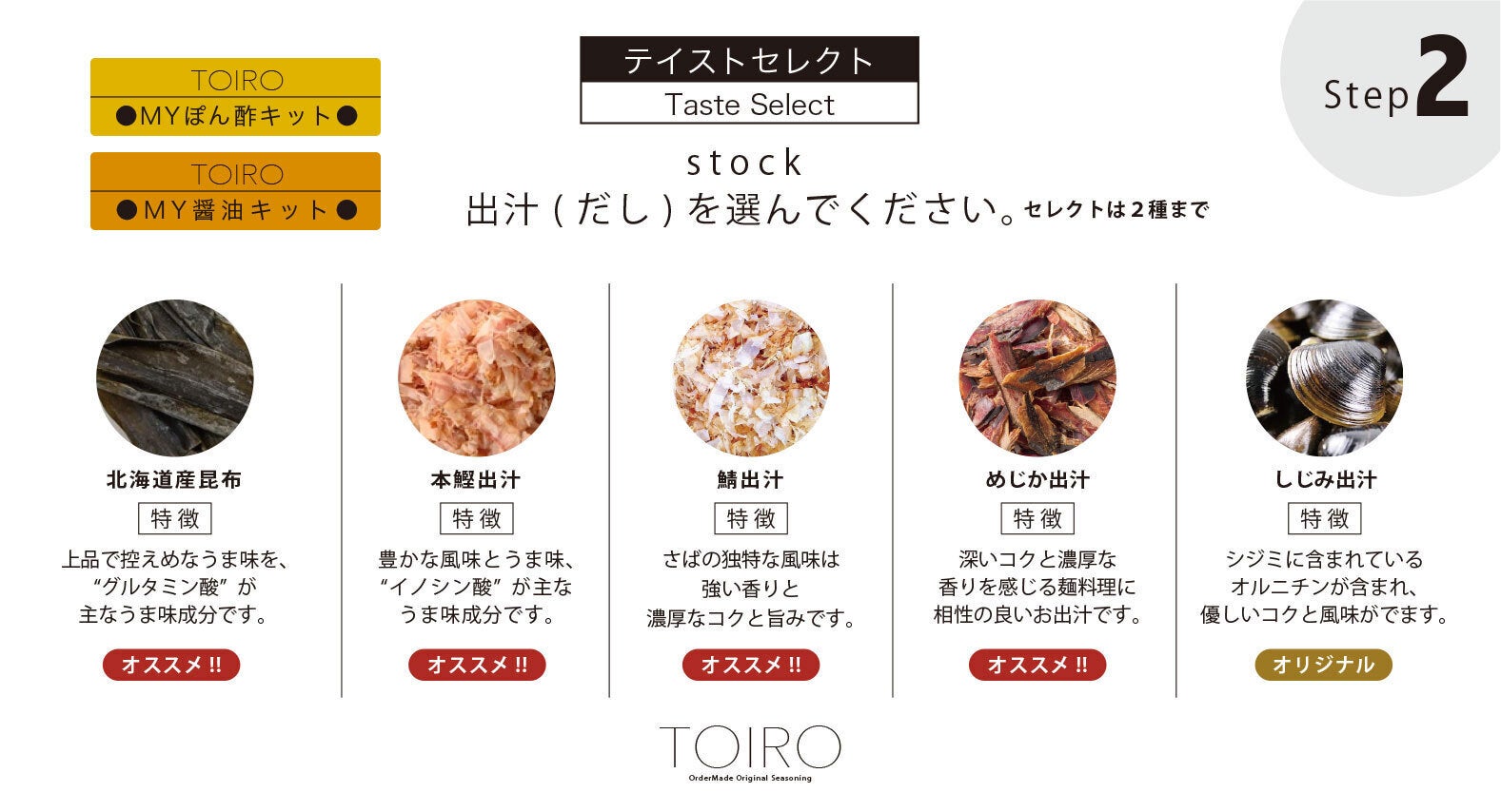 Step.2:次に味に深みをだす出汁を選びます。