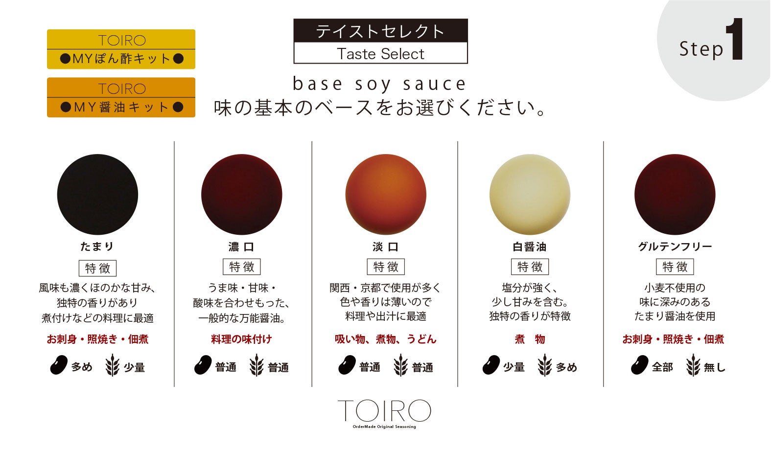 Step.1:まずは味のベースとなるベース醤油をお選び頂きます