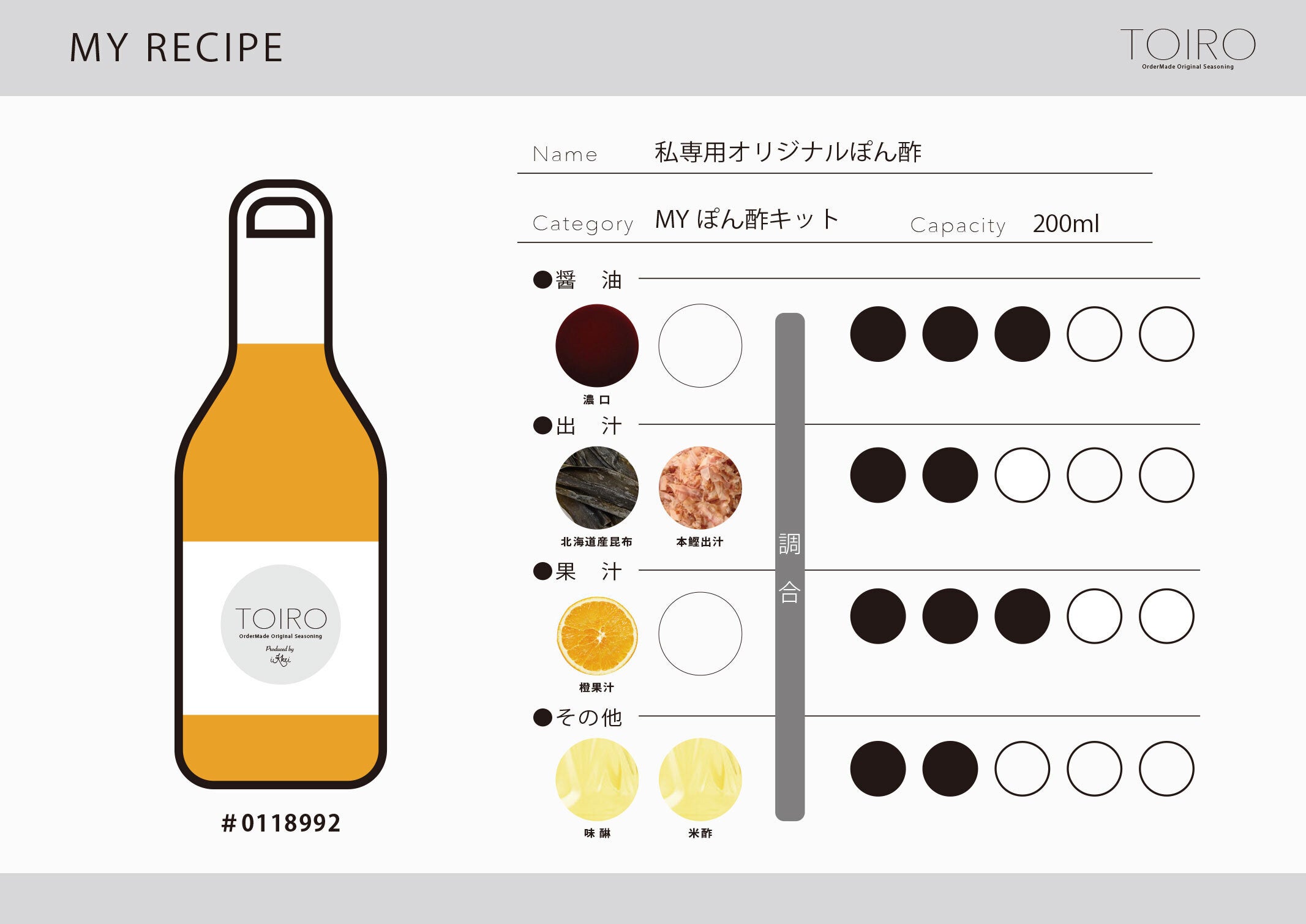 2、オリジナル調味料キット【TOIRO】MYぽん酢キット×1セット