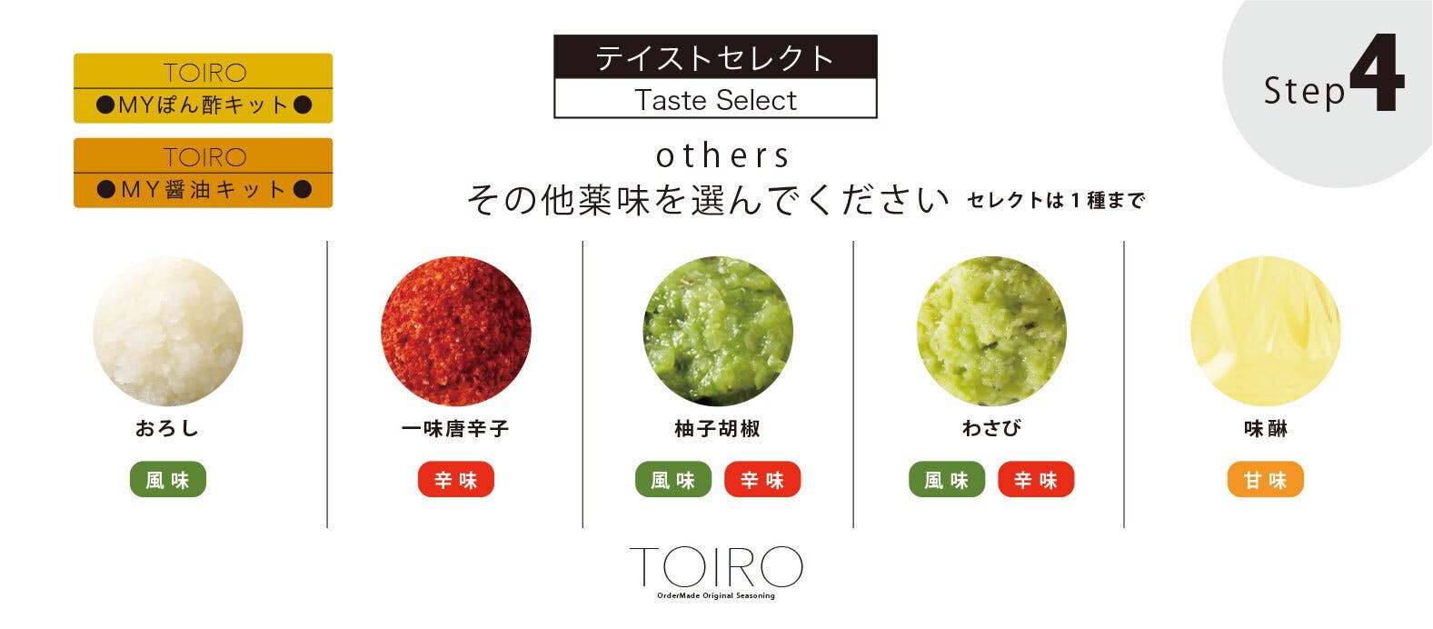 Step.4:その他お好みの薬味などを選びます。