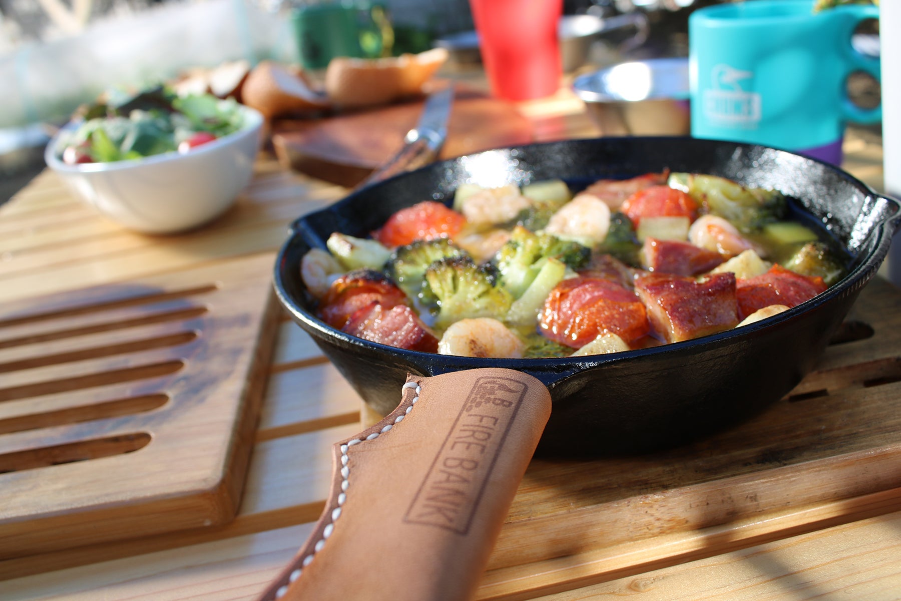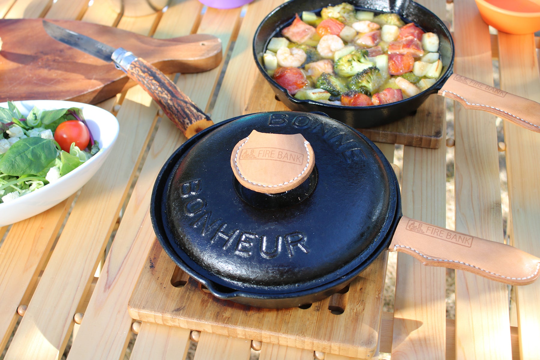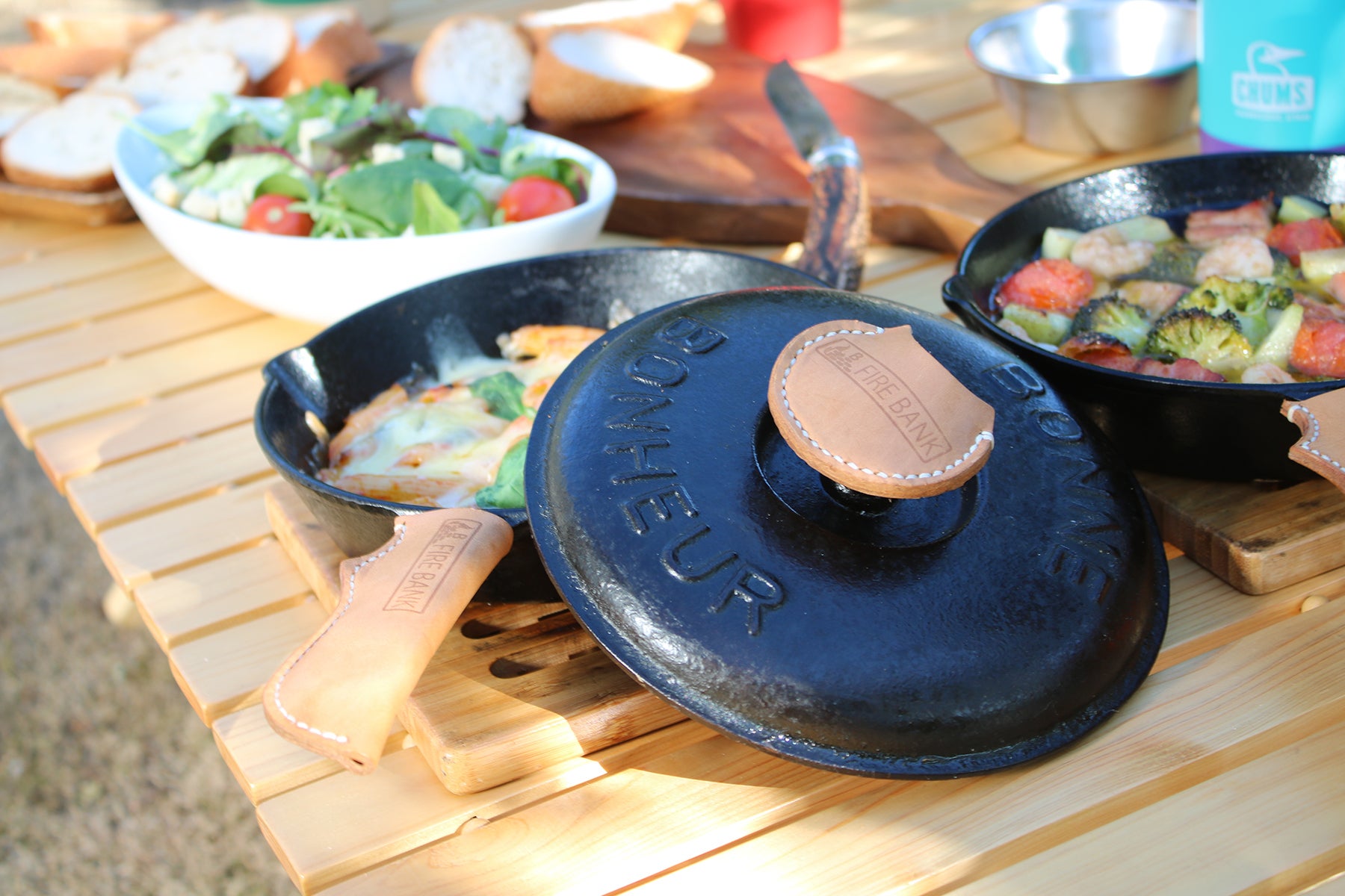 キャンプ場やバーベキューでのおいしい食卓をさらに華やかに演出してくれる革製品となります。