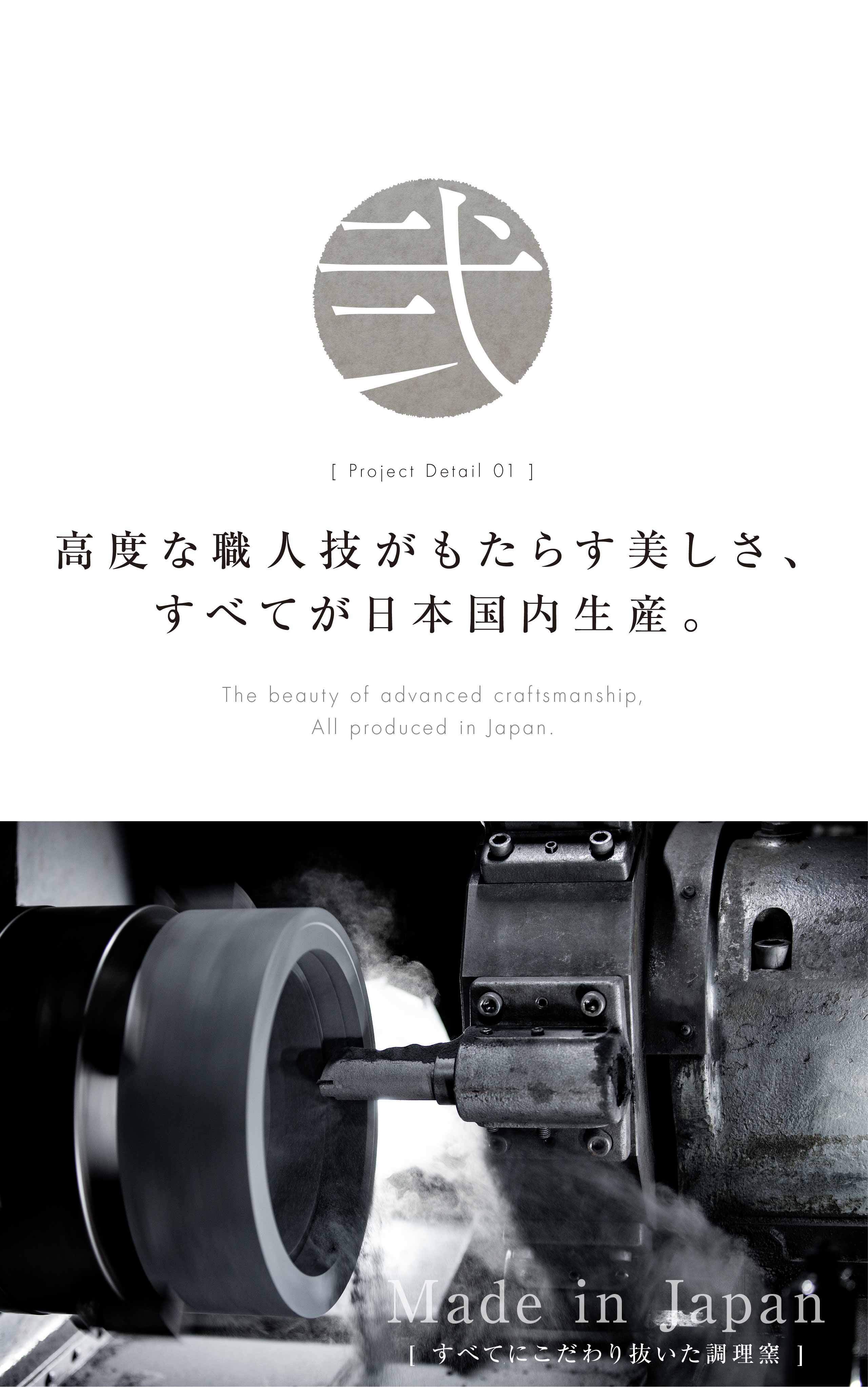 寸分の狂いなく0.01ミリの精度で削り出すため、蓋との密閉感が高く無水調理も可能です。