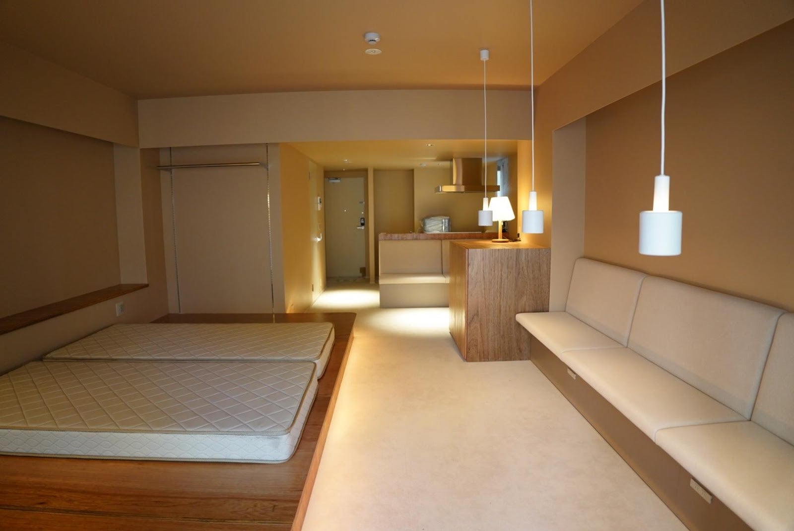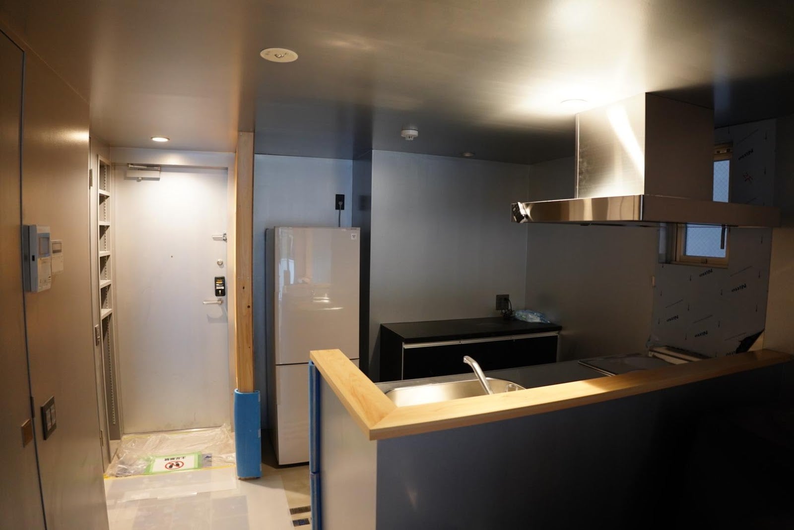居室とキッチンの間を仕切るカーテンと照明の設置を除いてほぼ完了しました。