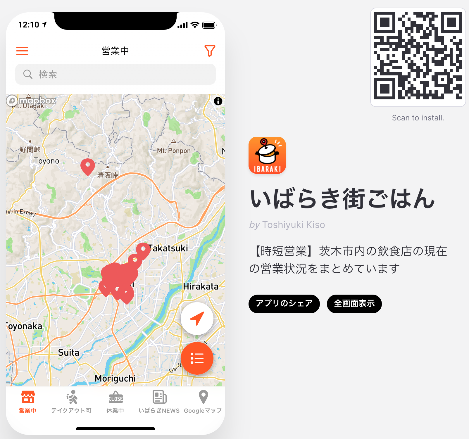 【内容】『いばらき街ごはん』というアプリを作りました。