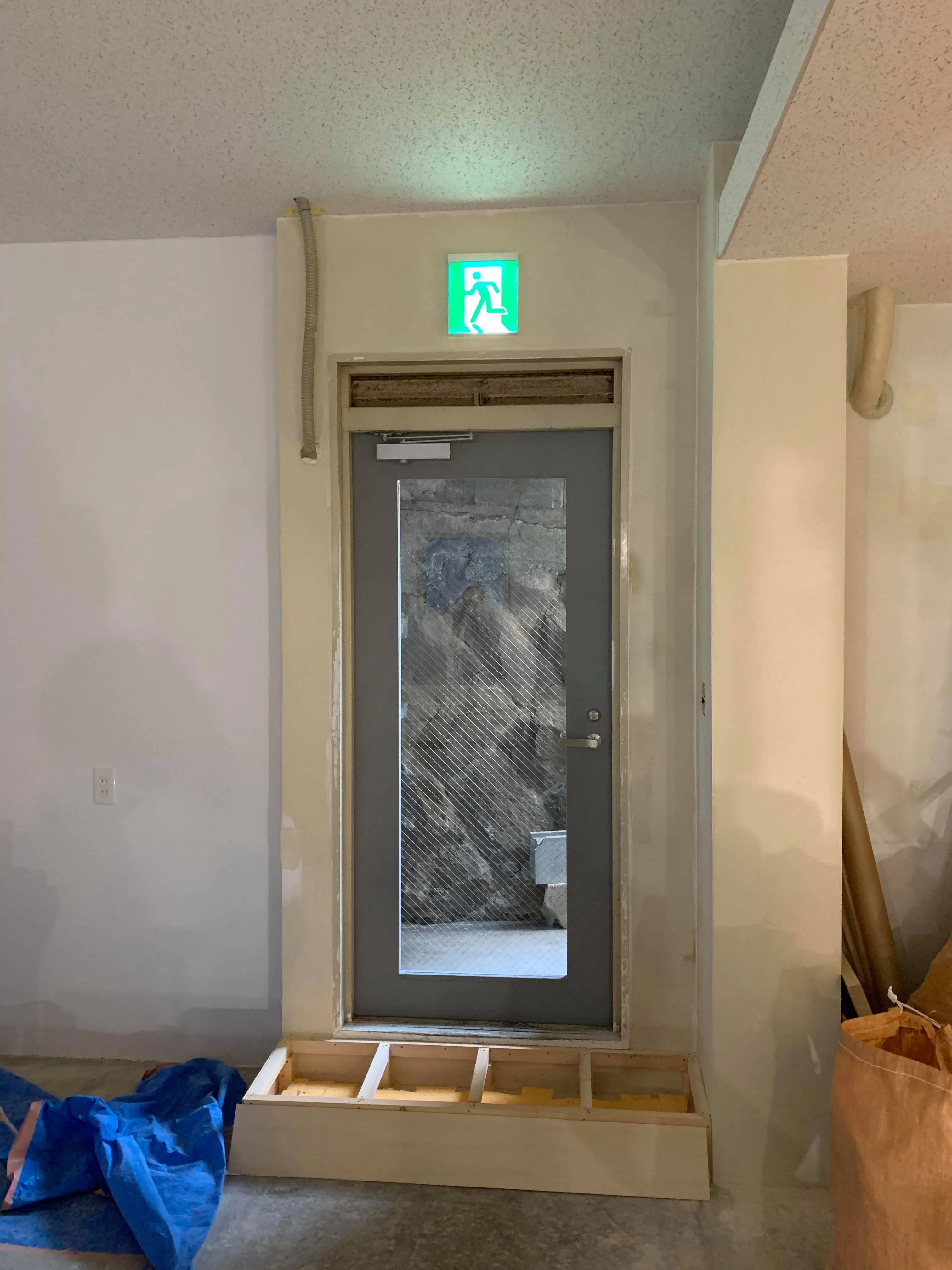 会員専用入り口の方に看板をつけるのですが、その土台ができてきています。屋根もつくので、雨がなるべくドア付近に入ってこないように工事してもらっています。