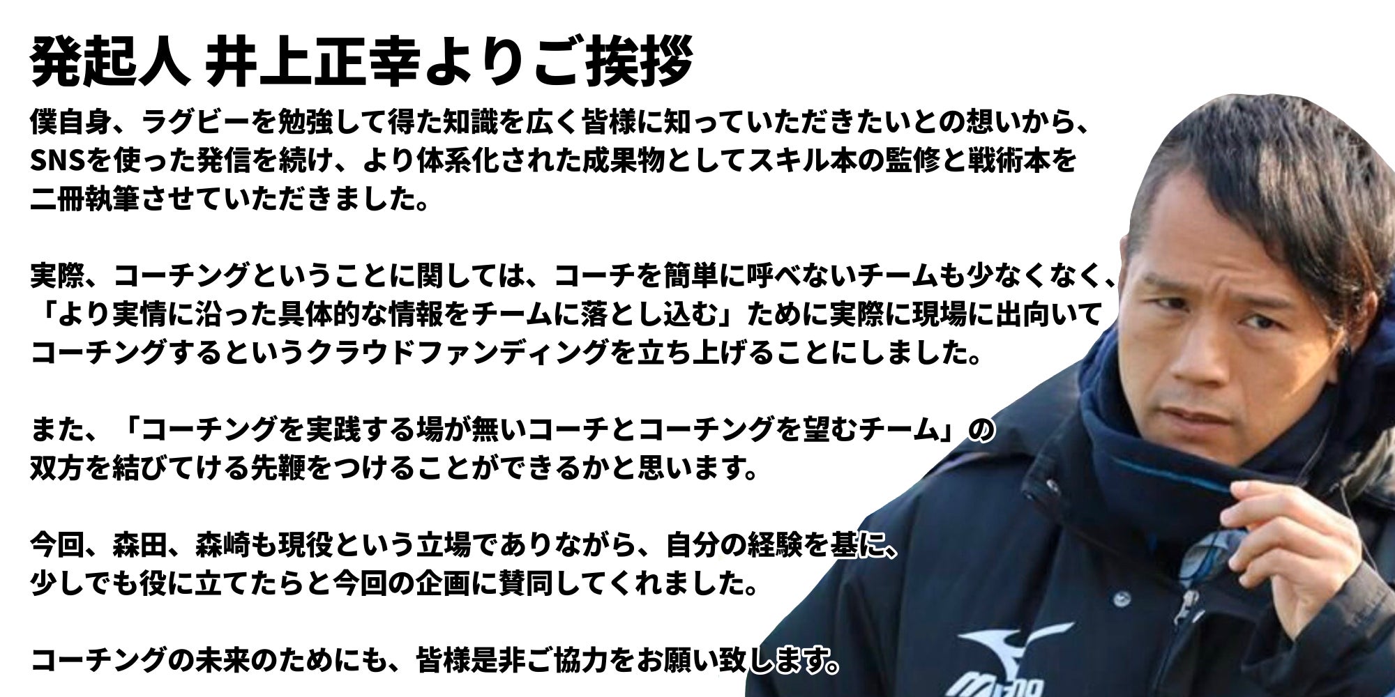 森田・森崎のプロジェクトを終了した後、井上正幸のコーチングクラウドファンディングを始動させる予定