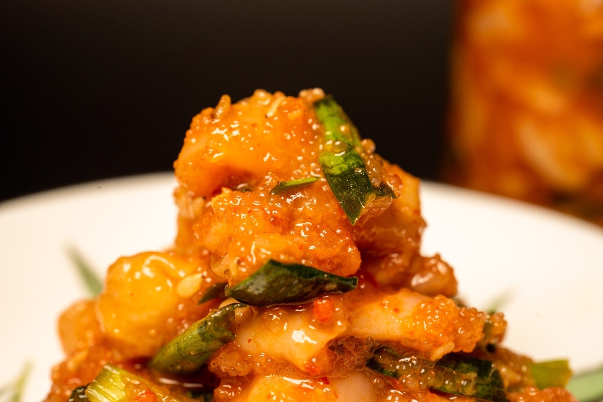 チャンジャとは、タラの内臓を韓国の甘辛味噌コチュジャンで漬けた珍味です。