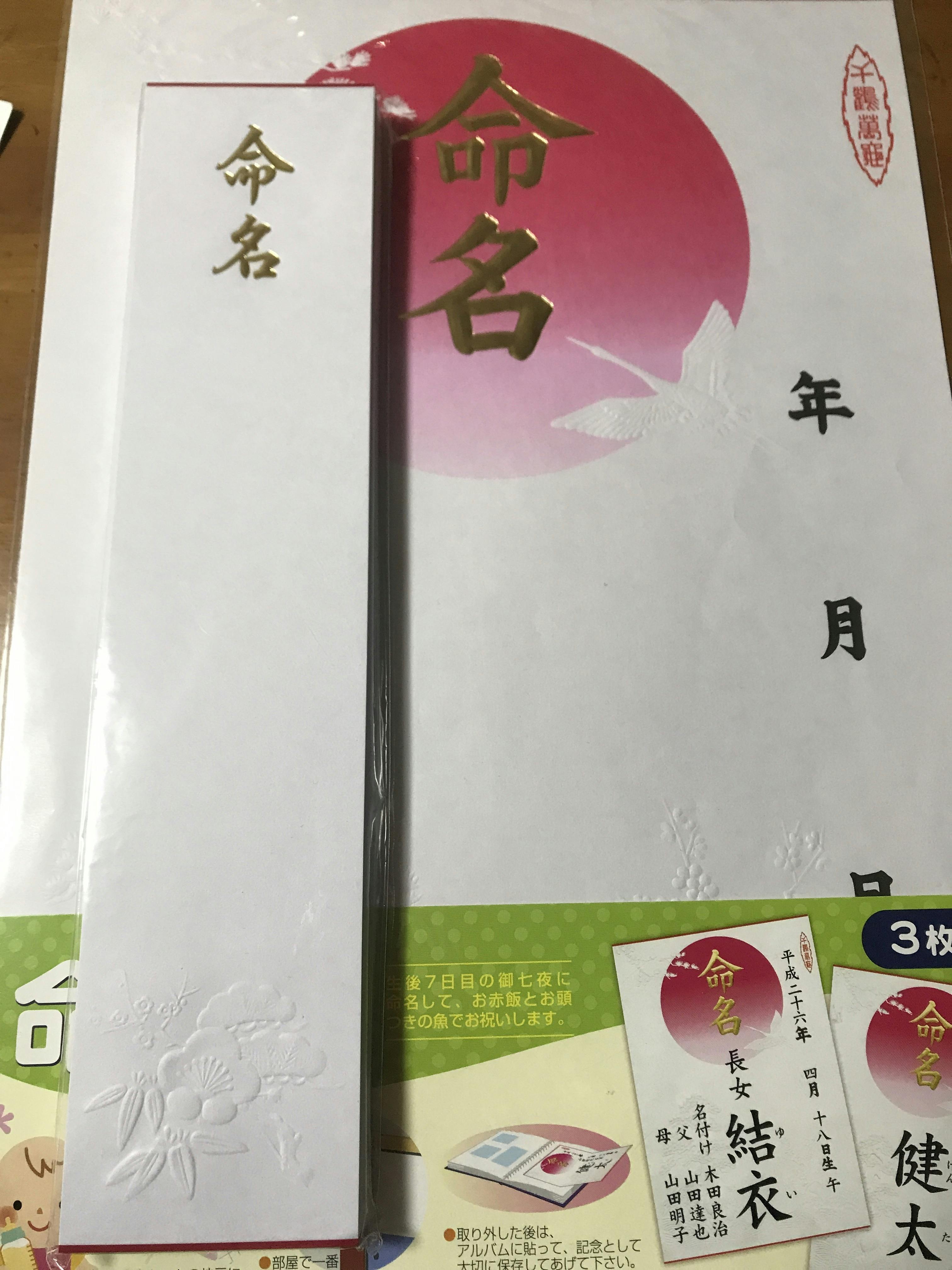 おいしいものいただいた後、友達が4人目の孫が誕生したと命名紙と命名札を持ってきて話して帰りました。