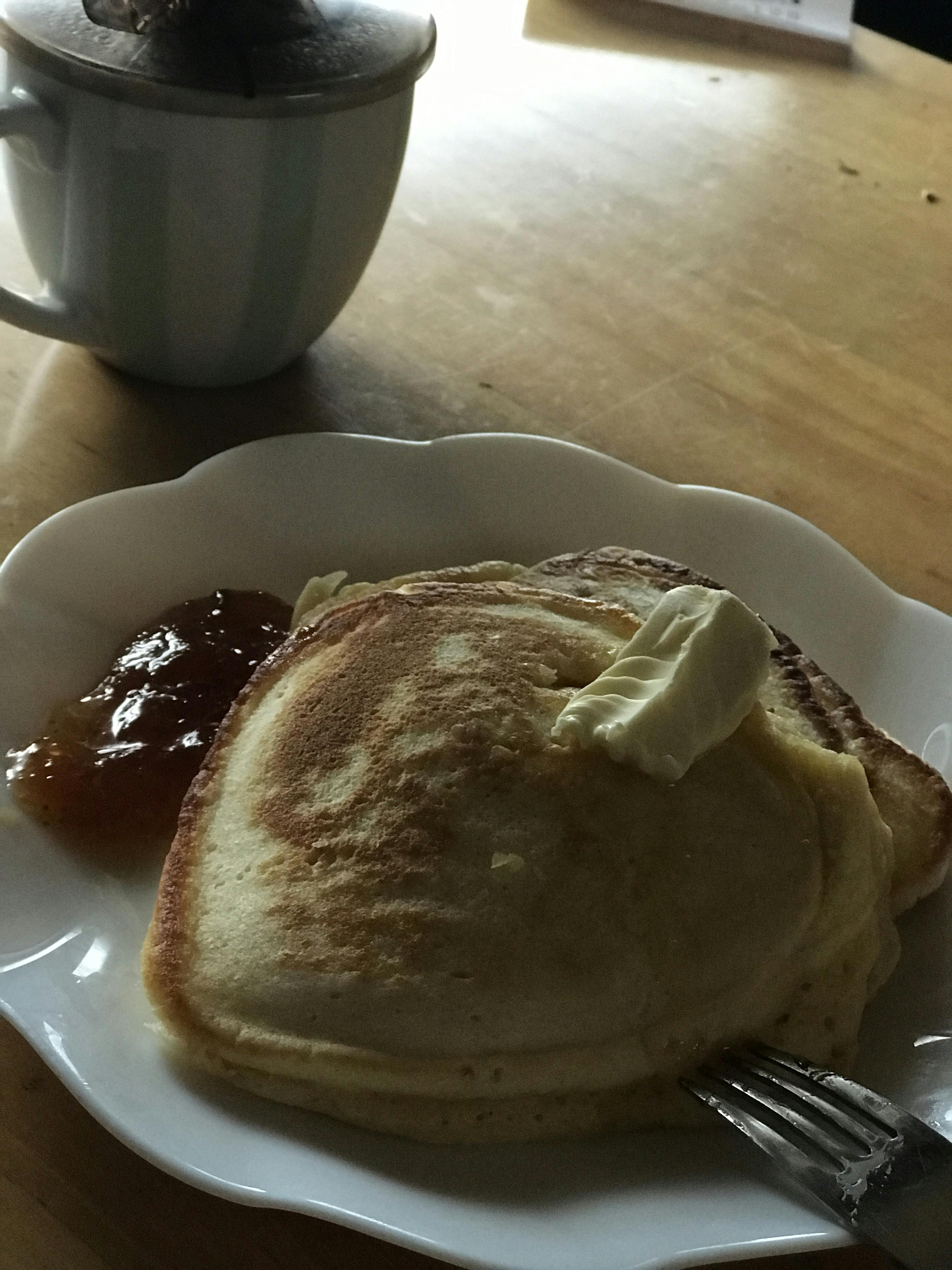 久しぶりにホットケーキ焼きました。丸く焼けたのはかあちゃんに、訳あってねじれたのを私が食べました。