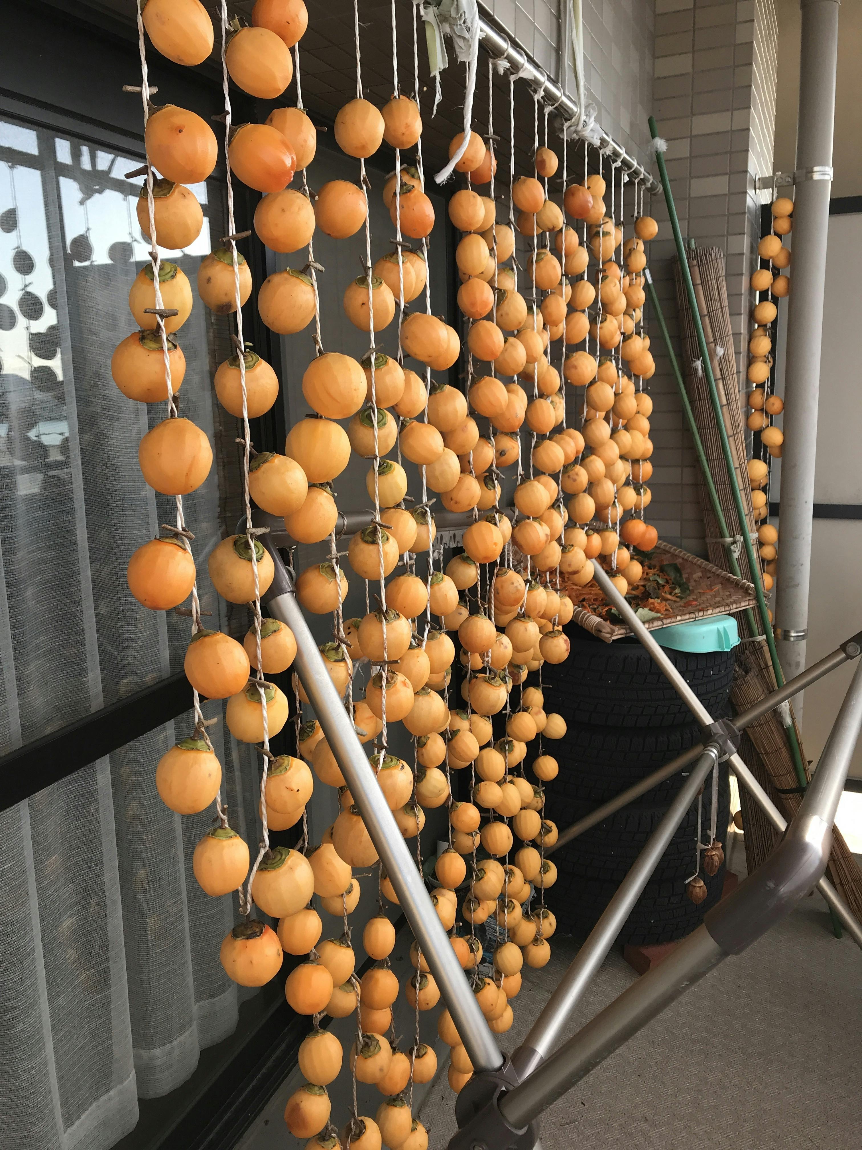 広島で収穫してきた渋柿は昨夜全て剥きオール干しました。素晴らしい景色です。