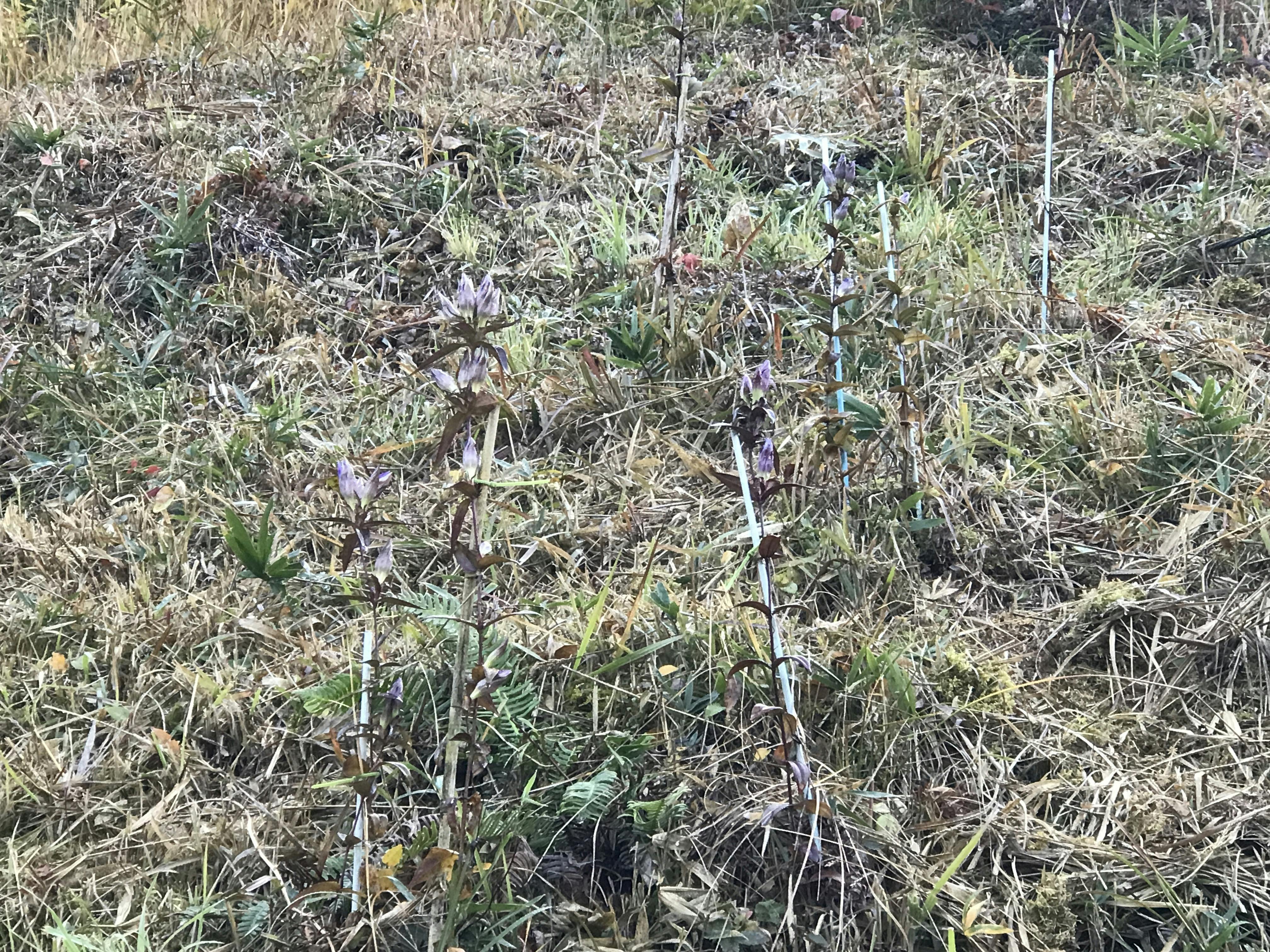 安田の抜湯地区にリンドウの群生地を目指している方がいます。