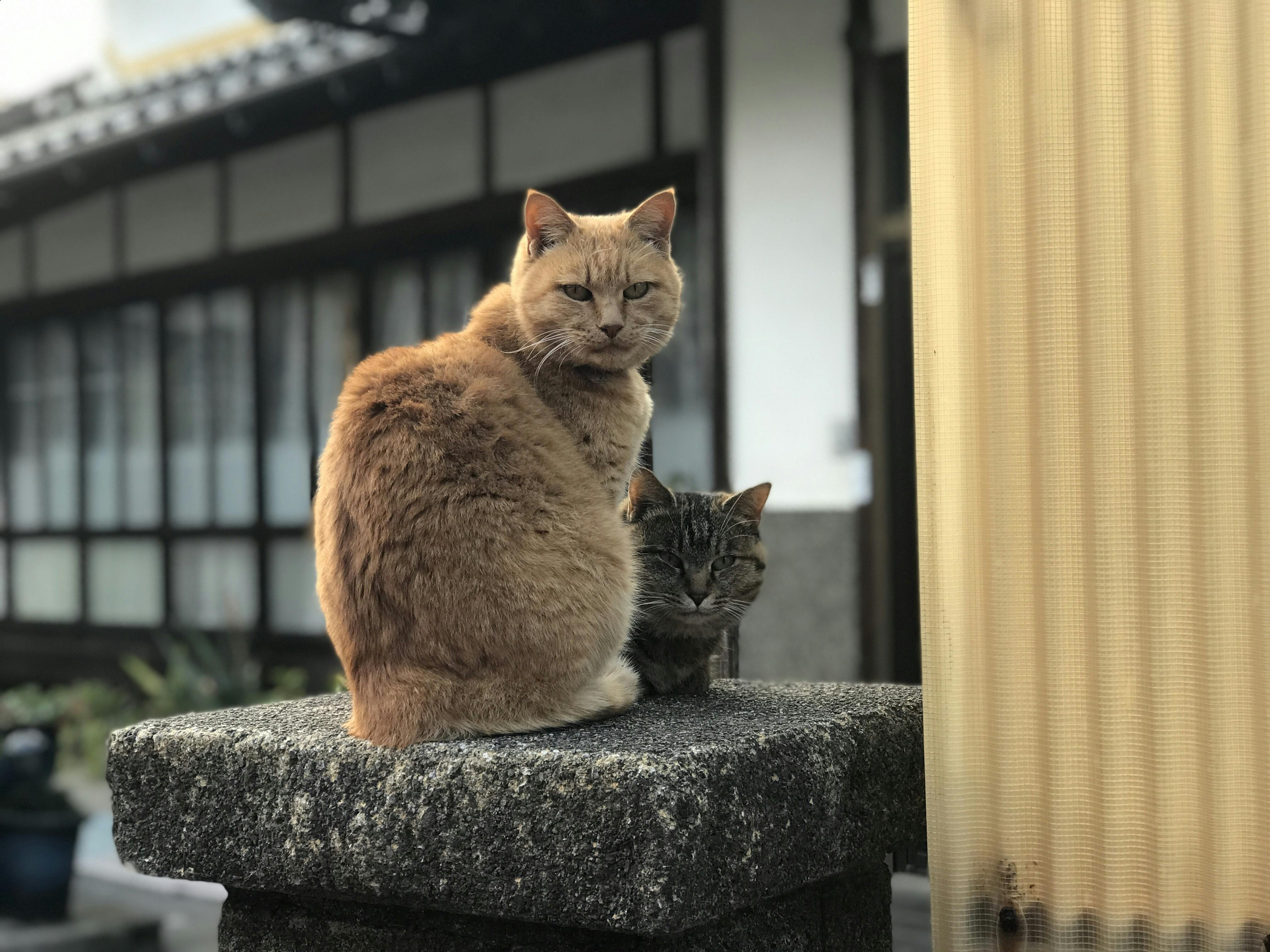 猫は近所の猫です。カメラ目線と冷静な態度はさすがです。