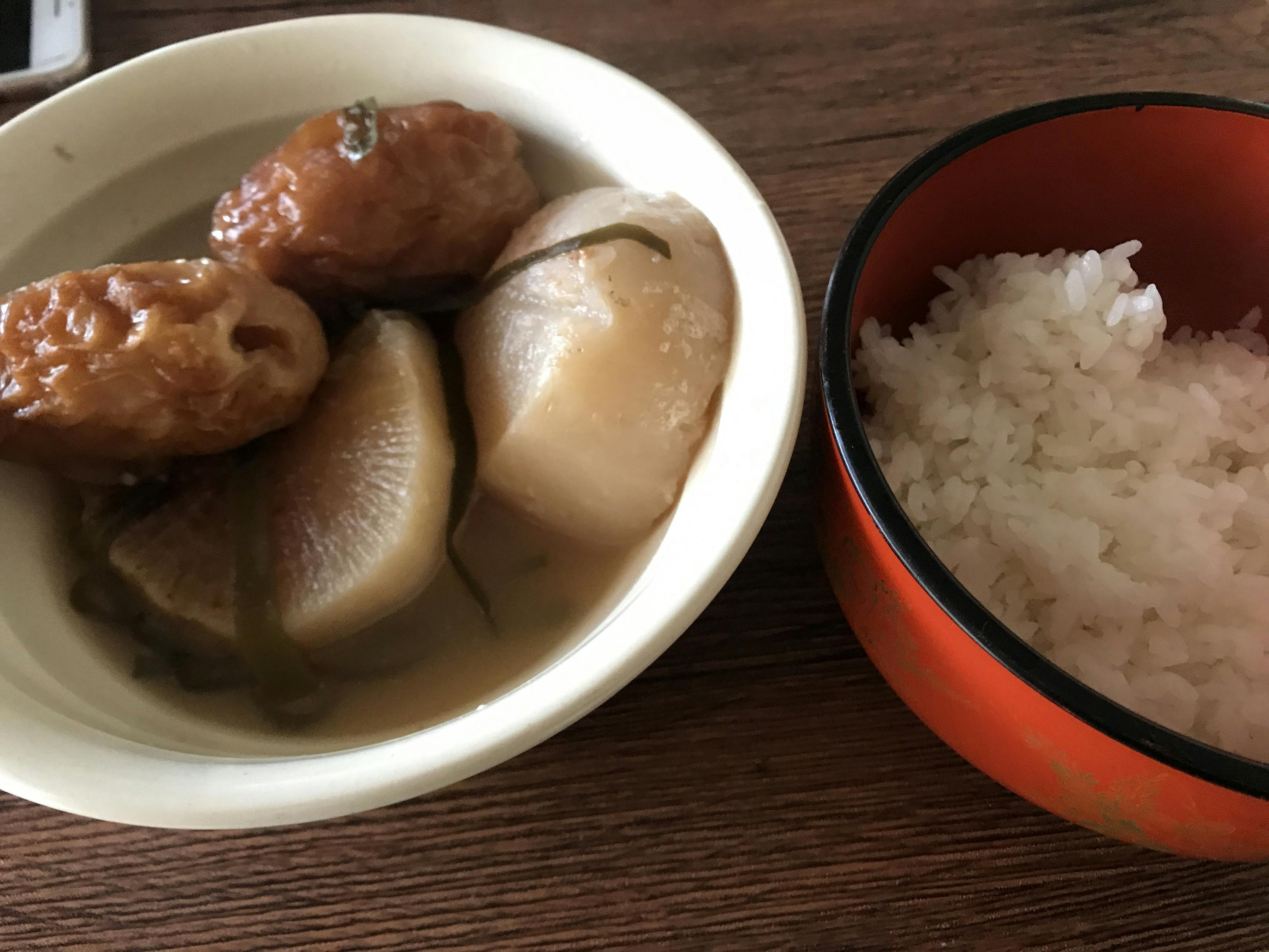 お酒のつまみにもいいし、家で作ったら量が増えるし良かったらご利用いただきたいと作った大根とちくわのみを食す。