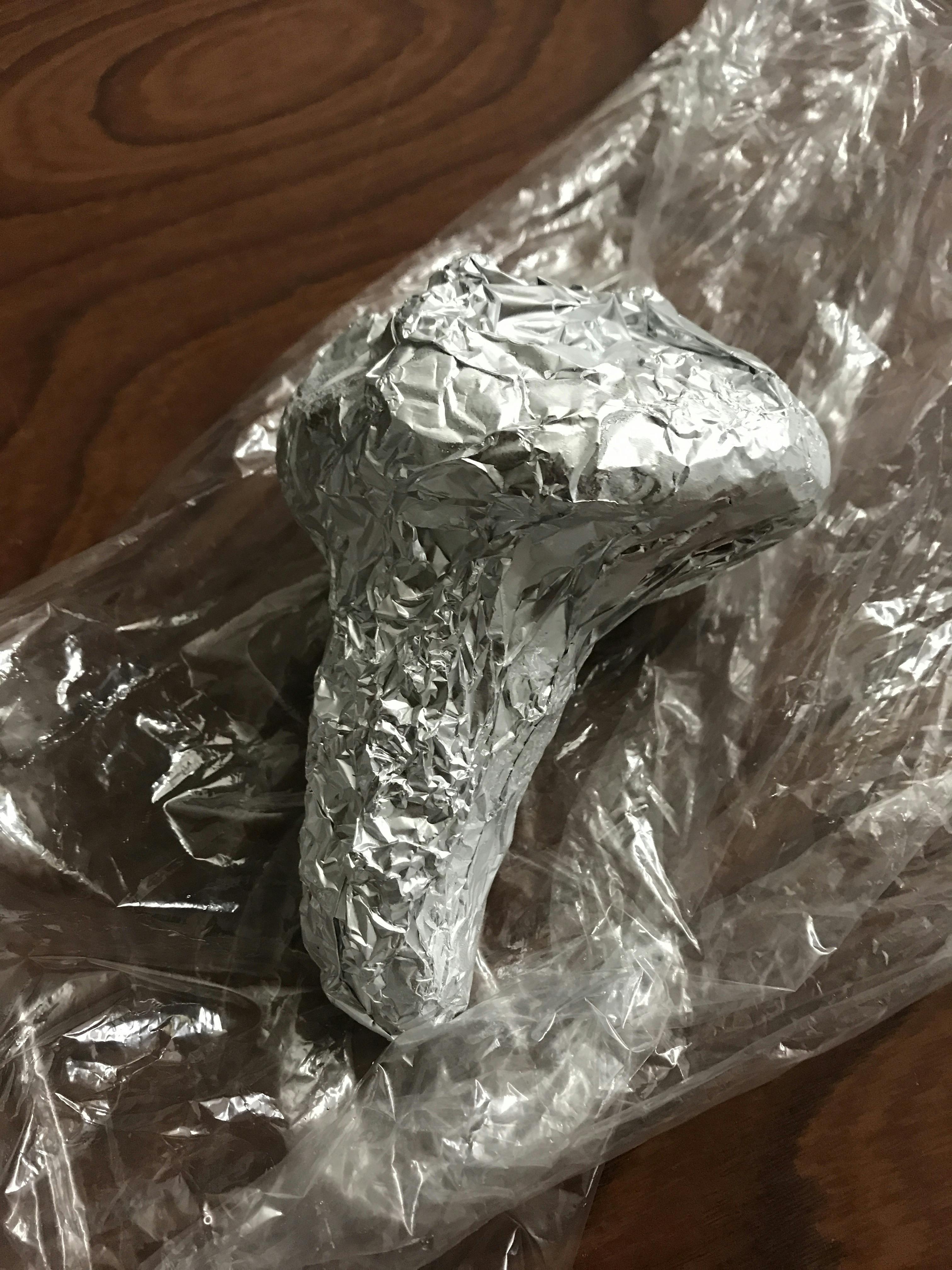 アルミホイルに包まれてはいますが、中身は丸わかり。