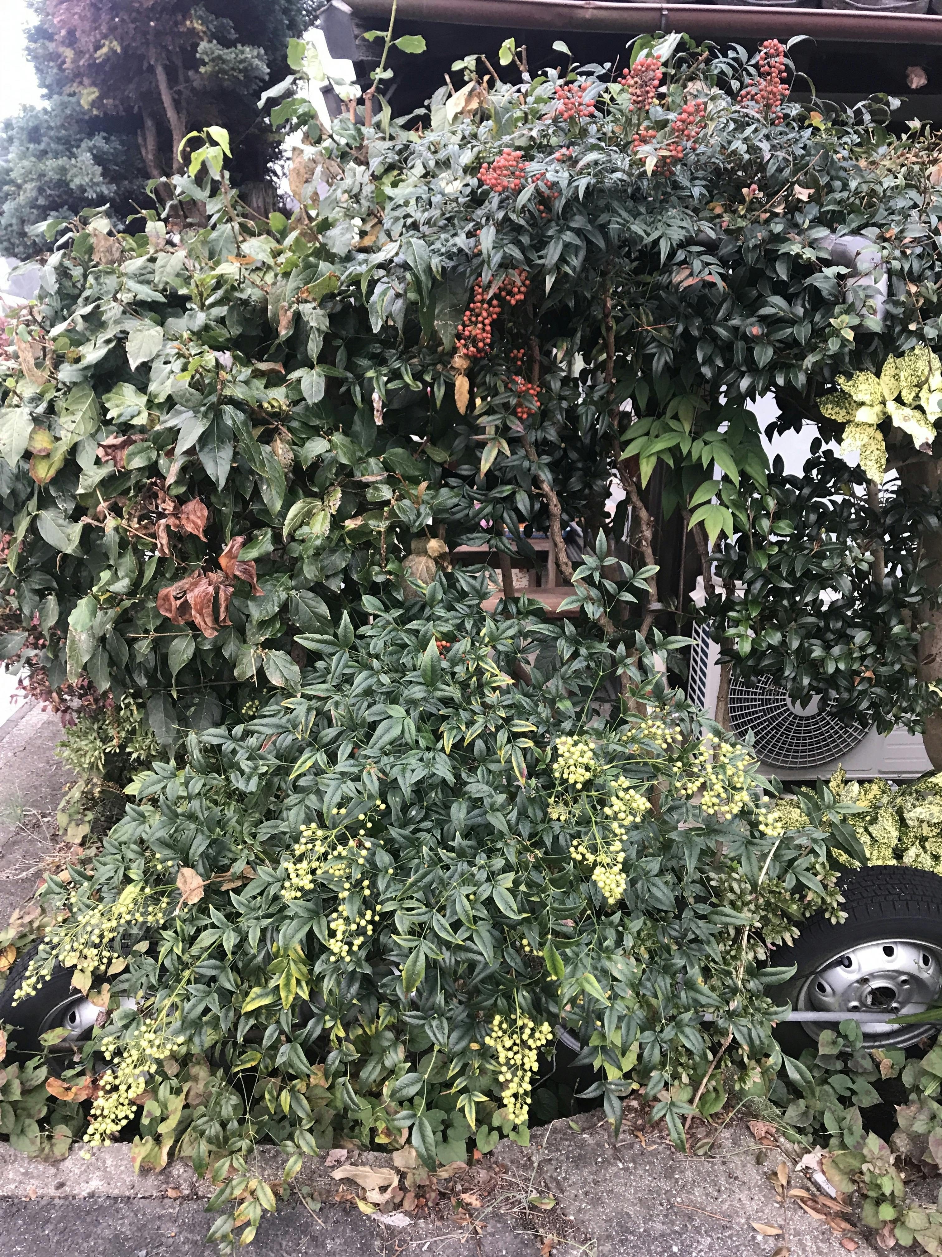 カフェ外に紅白の南天があります。縁起良い。収穫してお茶にします。