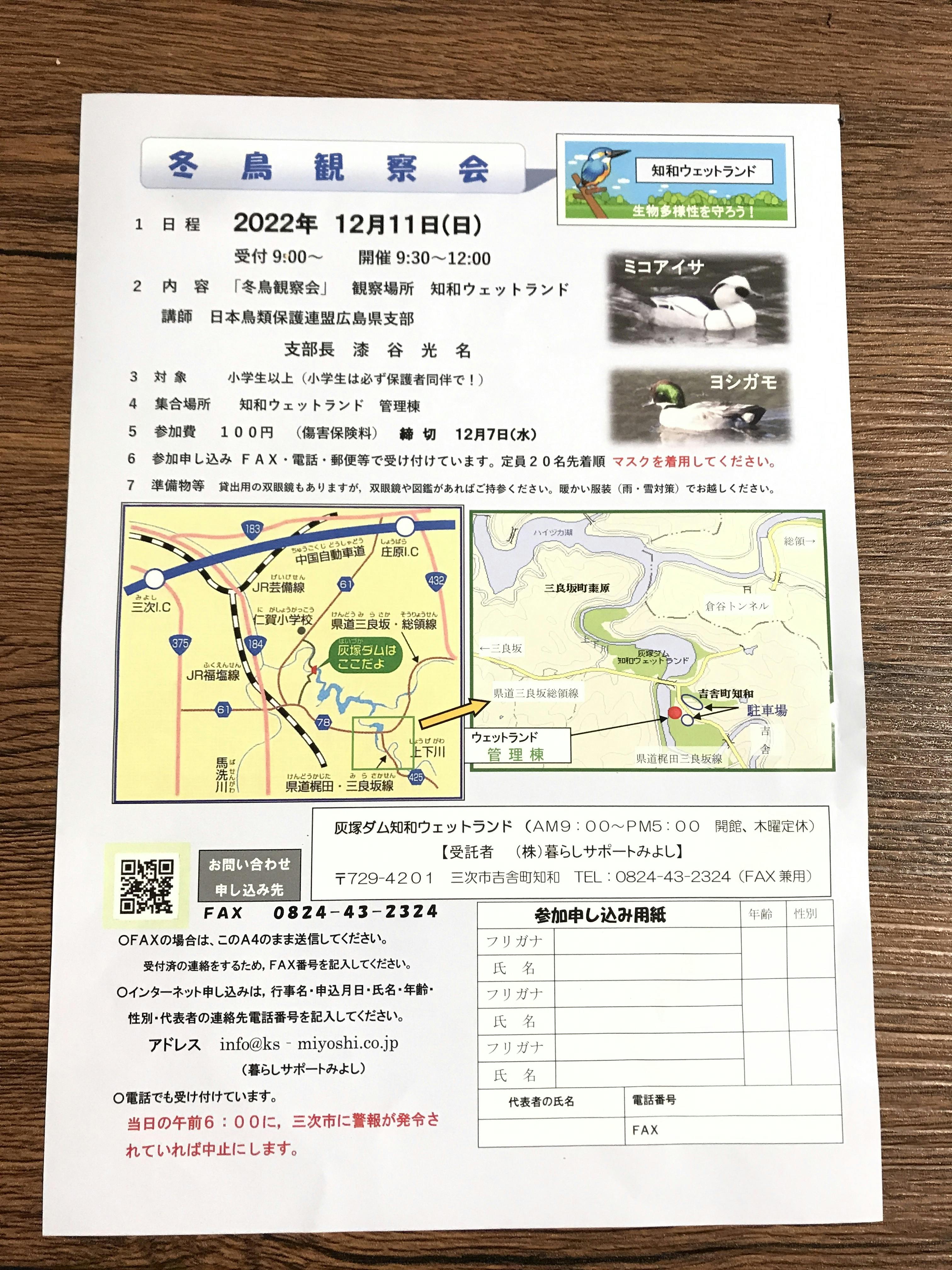 私がこの間観たでっかい野鳥や、白と黒なのに顔のとこのデザインが違う鳥たちもいるのとかも教えてもらえると思います。しめ縄作りもありますので1日楽しめますね。詳しくはお問い合わせください。