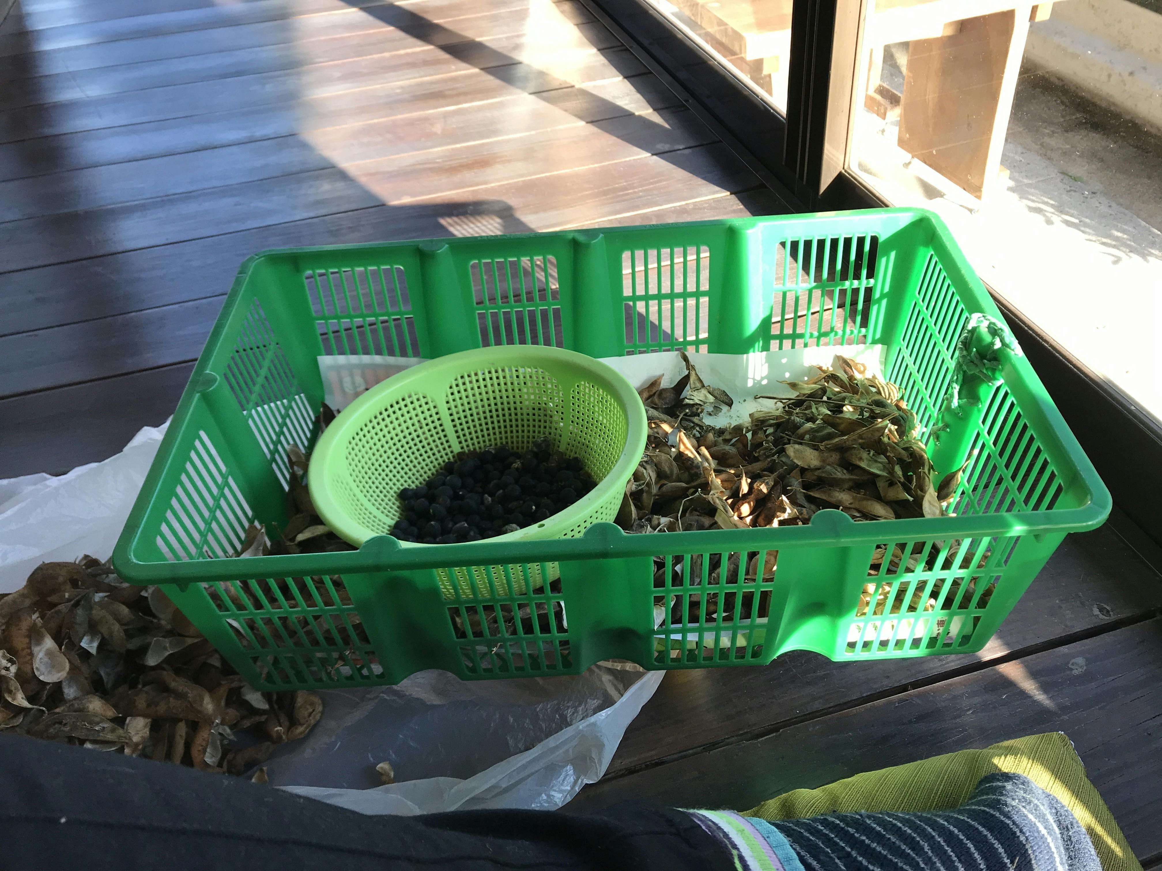 午後は縁側で黒豆作業