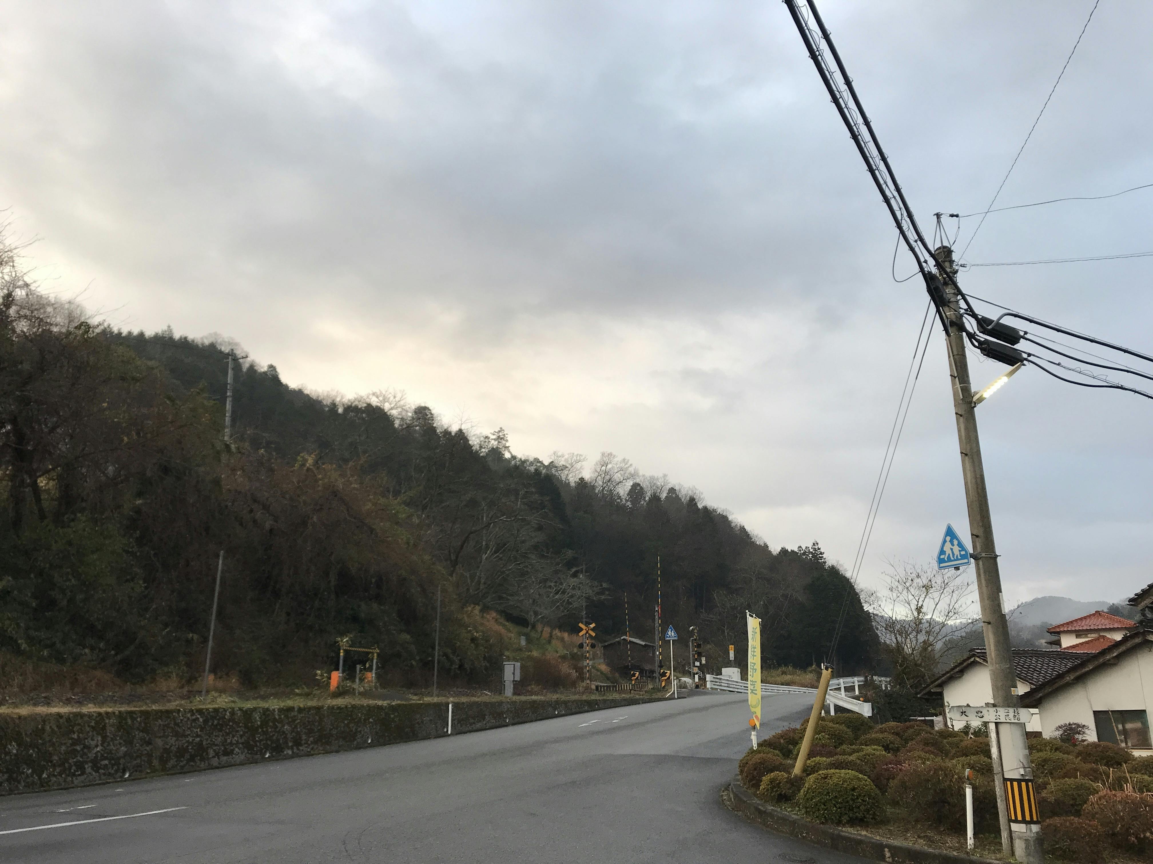 雨が降って止んでいます。まだ街灯が灯っています。寒さは感じない朝です。