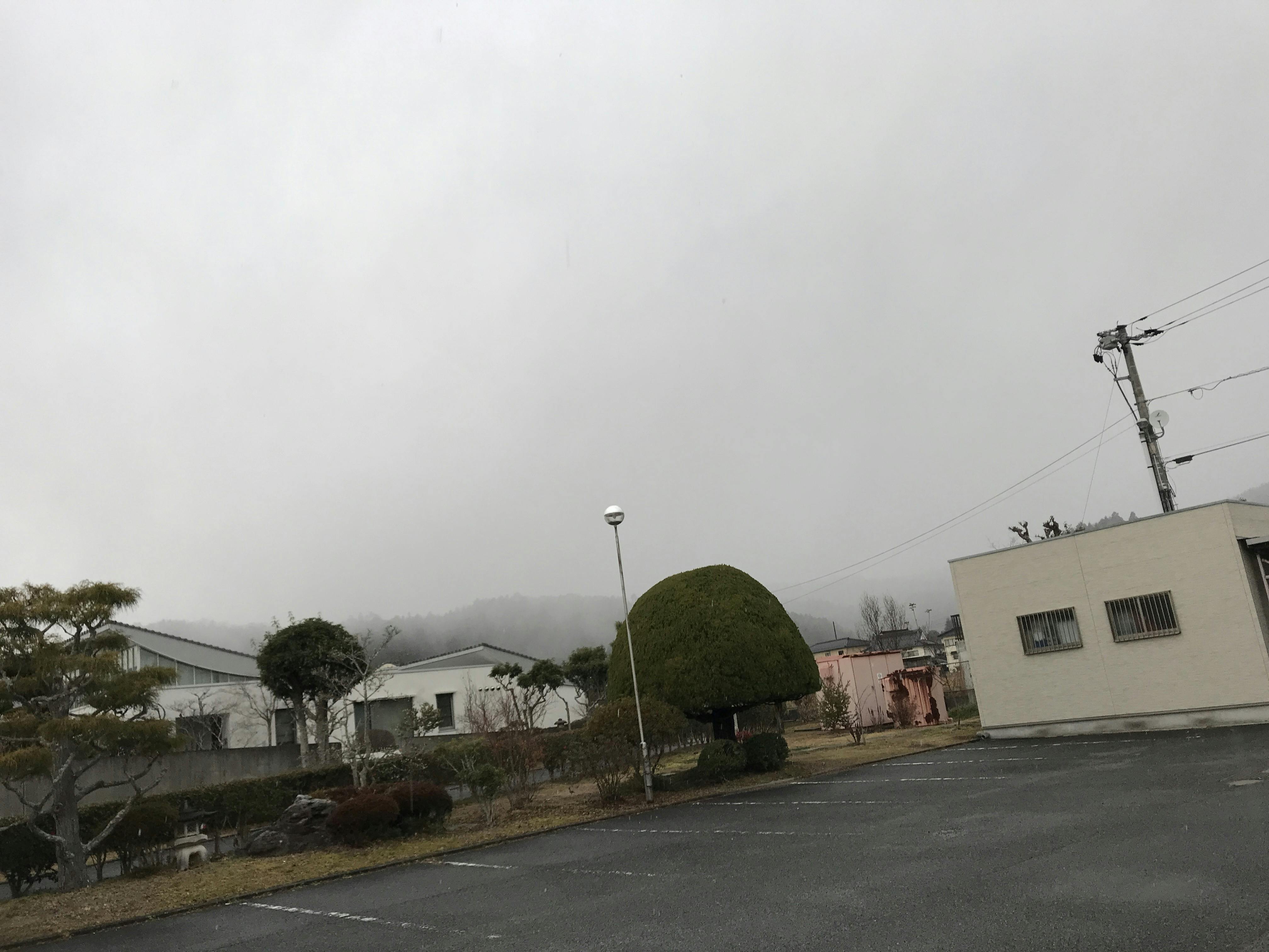 かあちゃんの病院はしごで既に世羅町に来てます。安田は弱い雨でしたが、世羅町は雪です。